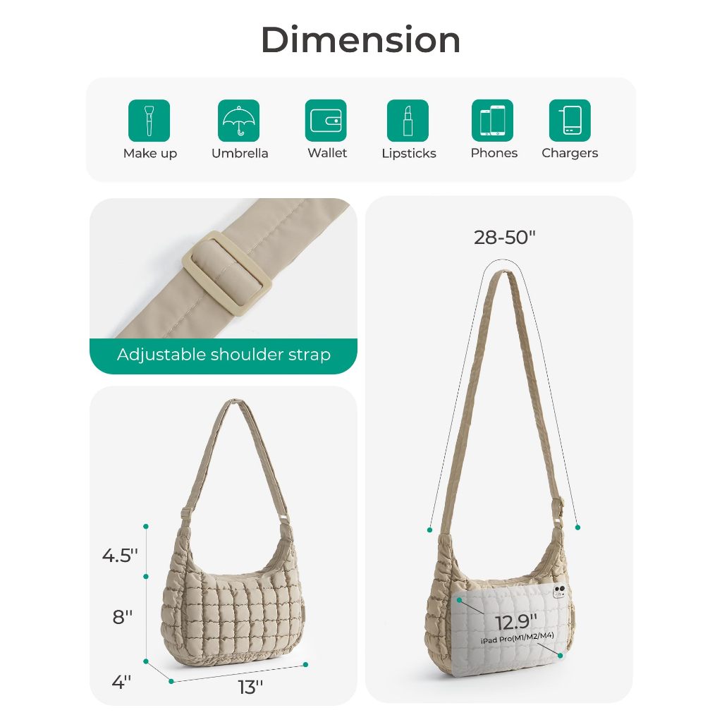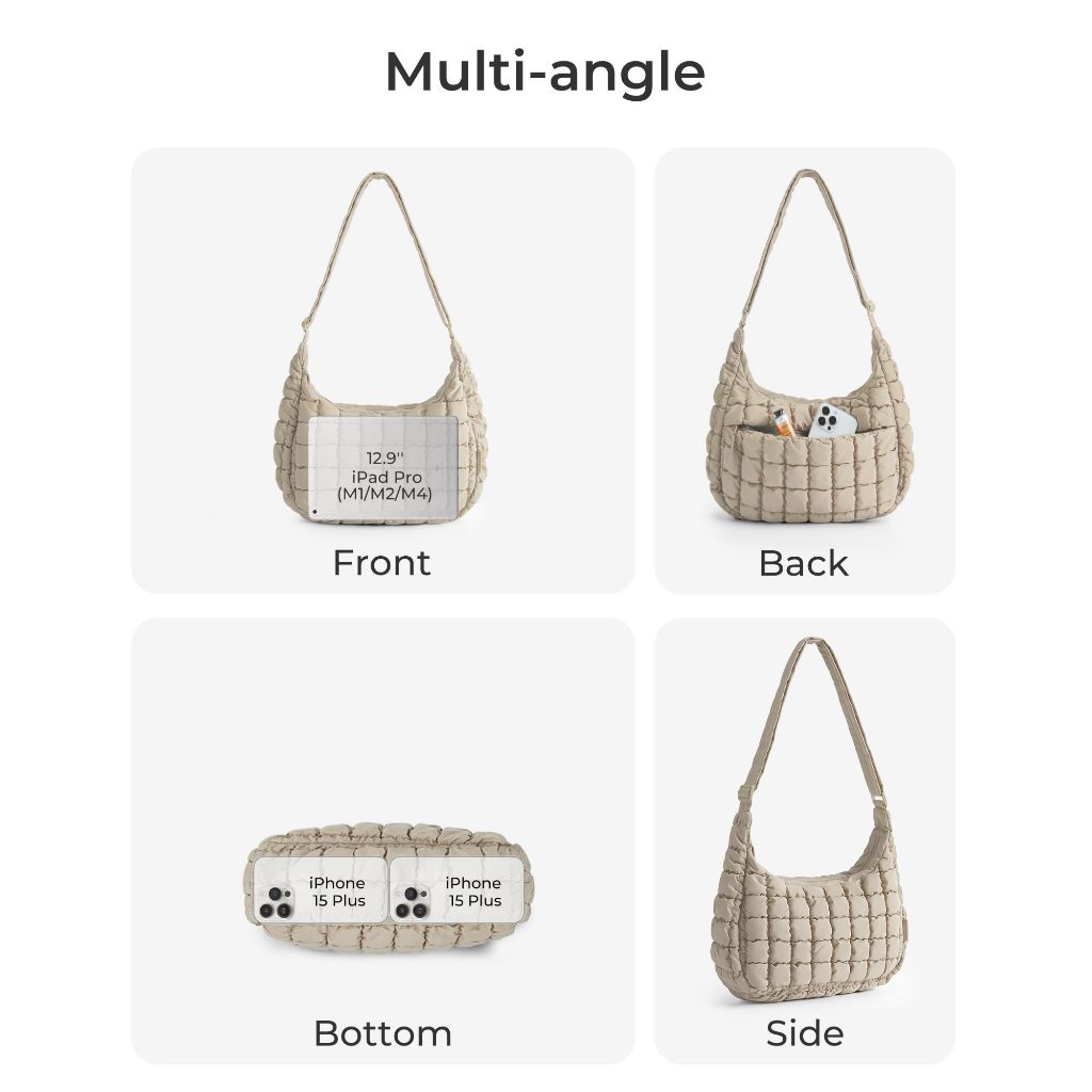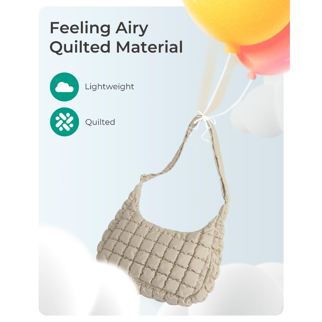 BAGSMART Quilted Puffy Crossbody Bag Lightweight Waterproof Large Hobo Sling Shoulder Handbag for Travel Commute Work