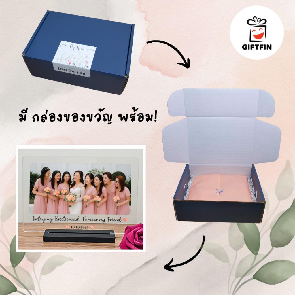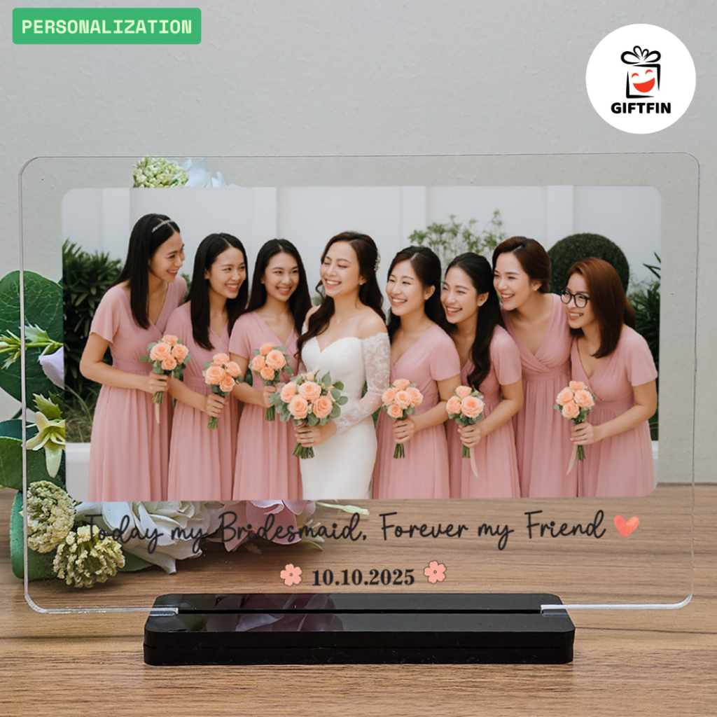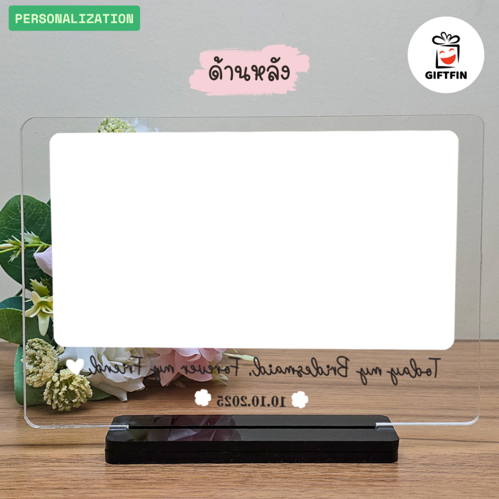 กรอบรูปอะคริลิคตั้งโต๊ะ พร้อมรูป + ข้อความสั่งทำ | ของขวัญเพื่อนเจ้าสาว ของขวัญให้เพื่อน | GiftFin
