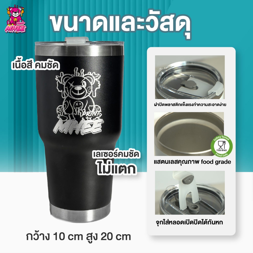[ออกแบบฟรี]แก้วเก็บอุณหภูมิ 30 Oz 900 ml. แกะสลักเลเซอร์ พิมพ์สี เก็บความเย็น เก็บความร้อน 6-12 ชม.