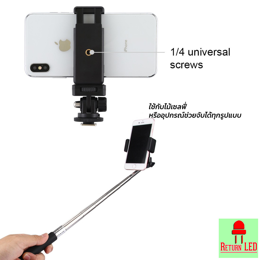 Puluz อะแดปเตอร์ ขาตั้งกล้อง สกรูเกลียว 1/4 นิ้ว พร้อมแคลมป์หนีบโทรศัพท์ ReturnLED