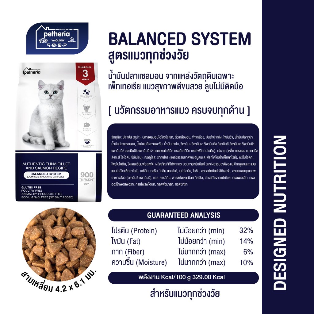อาหารแมวทุกช่วงวัย [BALANCED SYSTEM] [No Corn & Gluten Free] 900 G [ BS ]