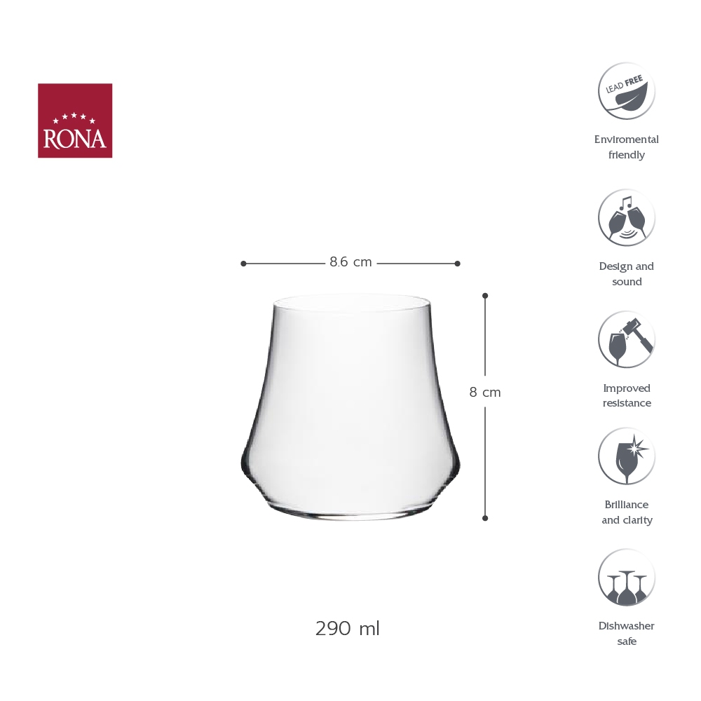 Rona Eclipse แก้วน้ำแร่ 290 ml Mineral Water Glass ( 1ใบ )