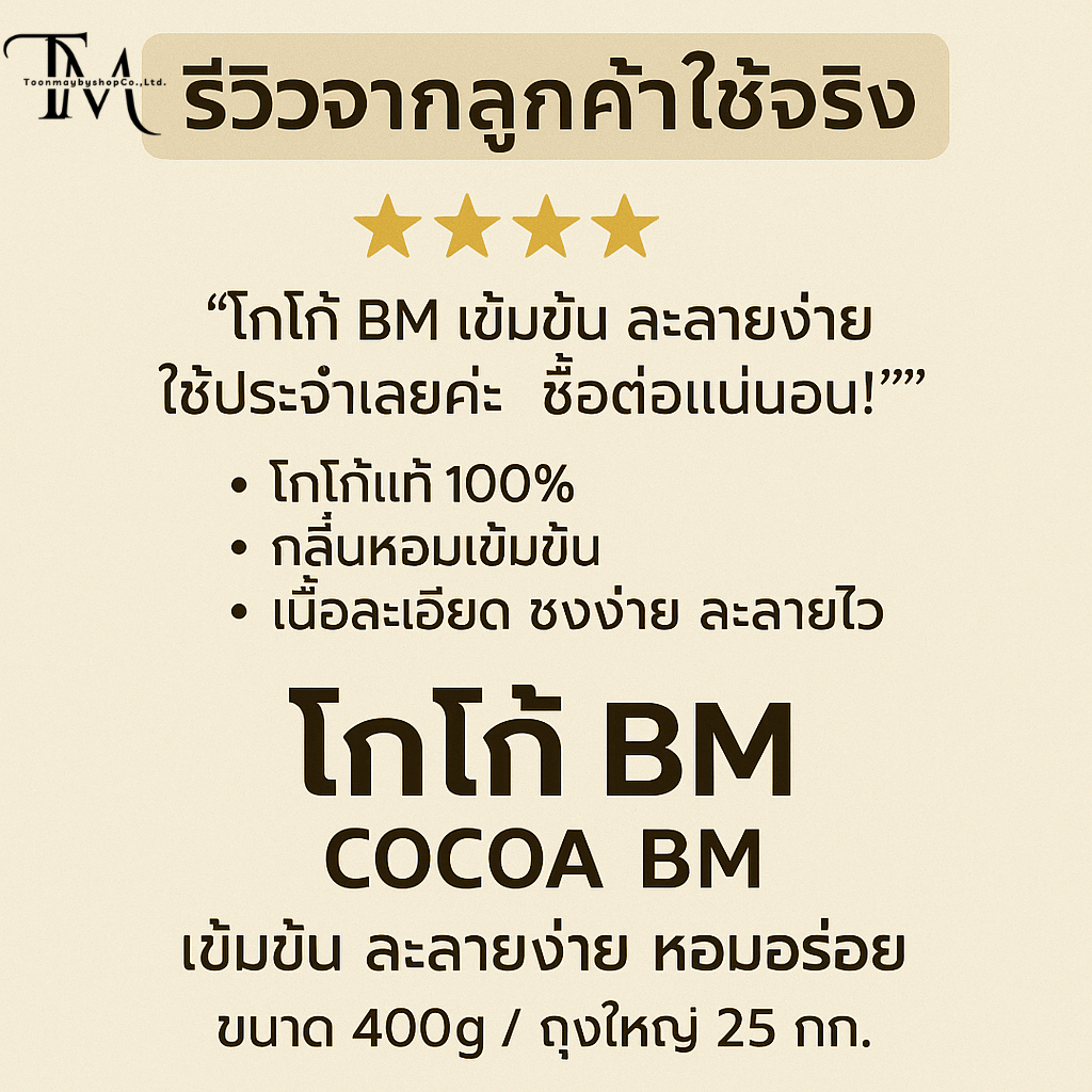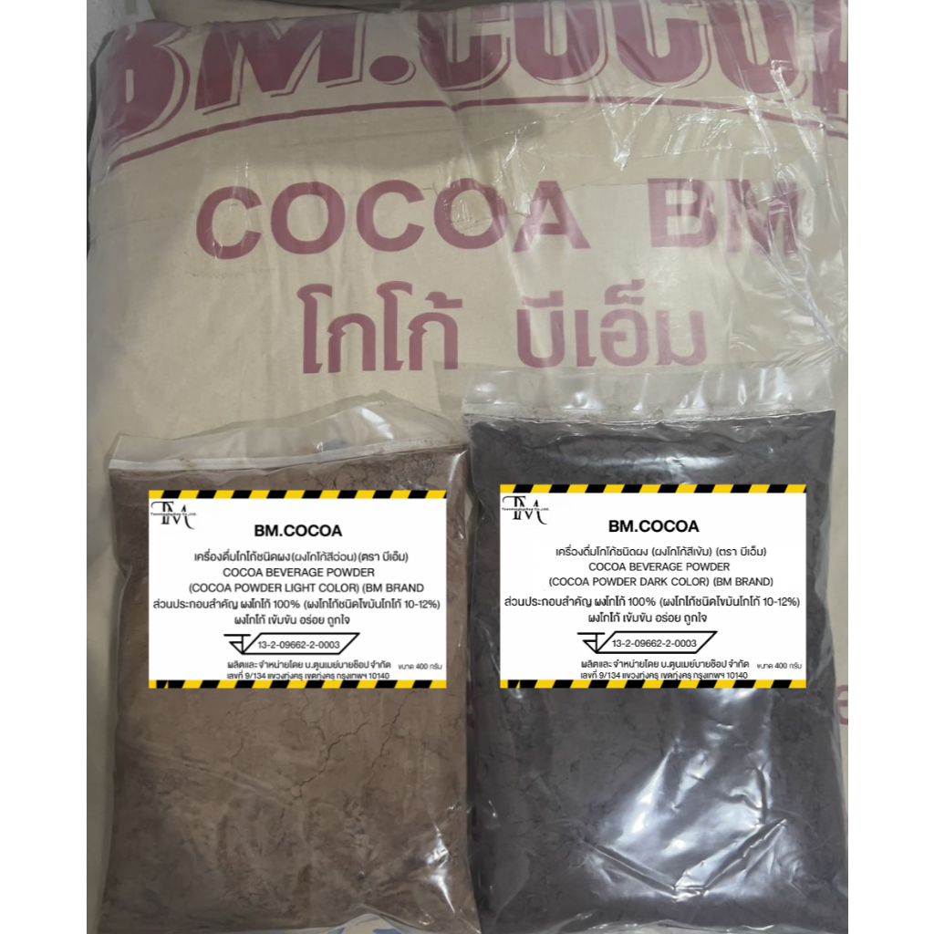 ผงโกโก้แท้บีเอ็มสีมาตราฐาน BM COCOA (1ถุง) 400G เข้มข้น ละลายง่าย ไม่ผสมน้ำตาล
