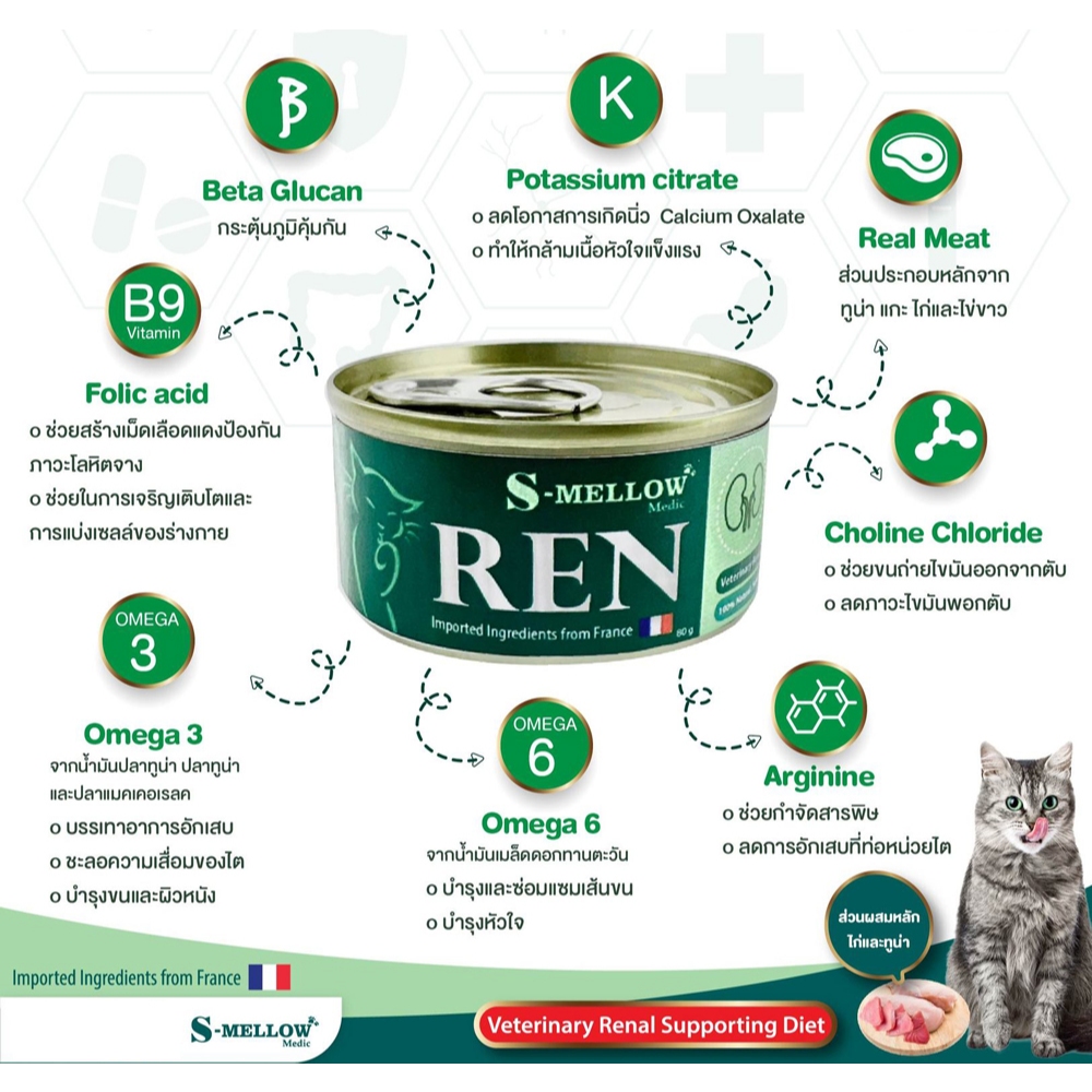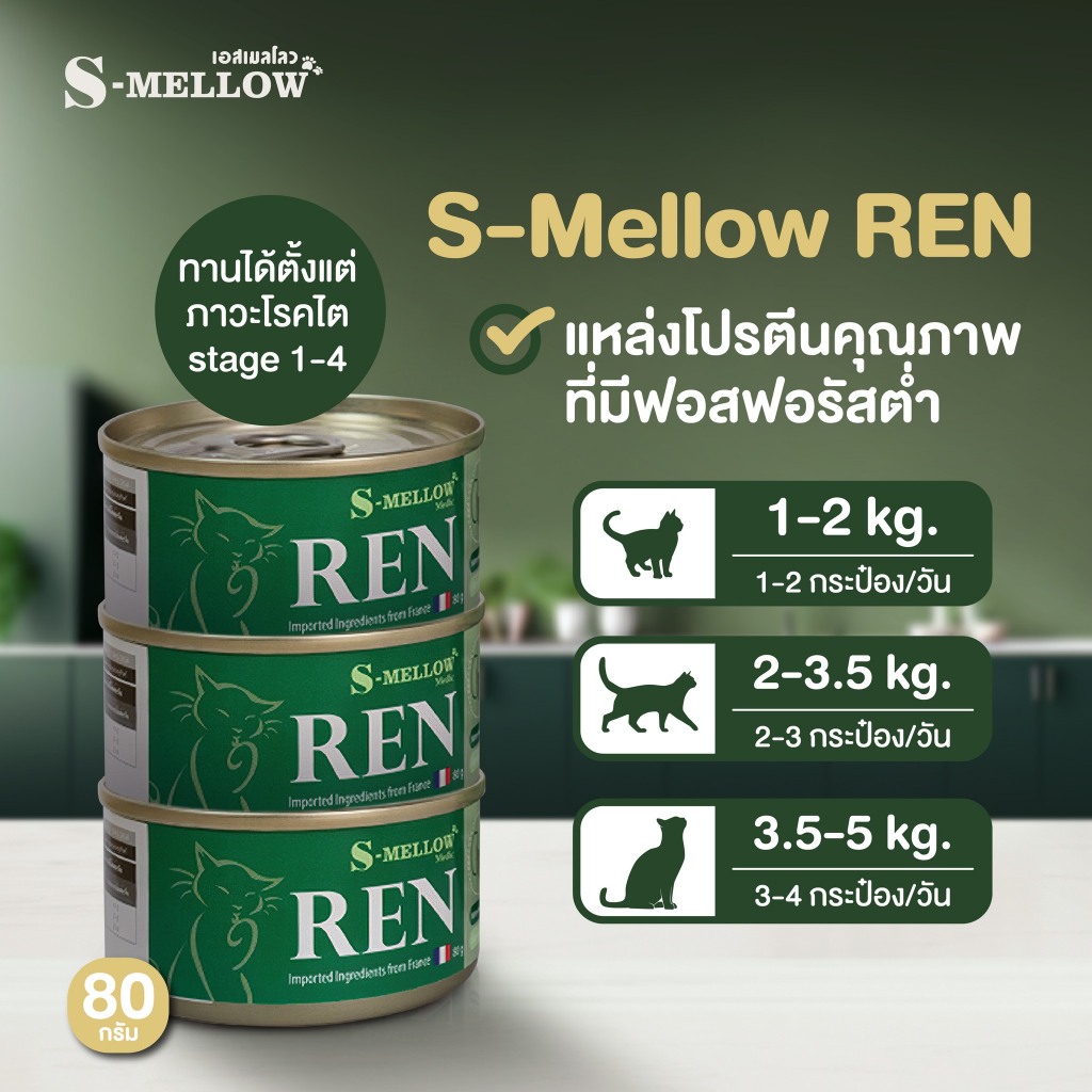 S-Mellow Ren อาหารสำหรับแมวโรคไต ช่วยชะลอการเสื่อมของไต และฟื้นฟูสุขภาพ ขนาด80g.