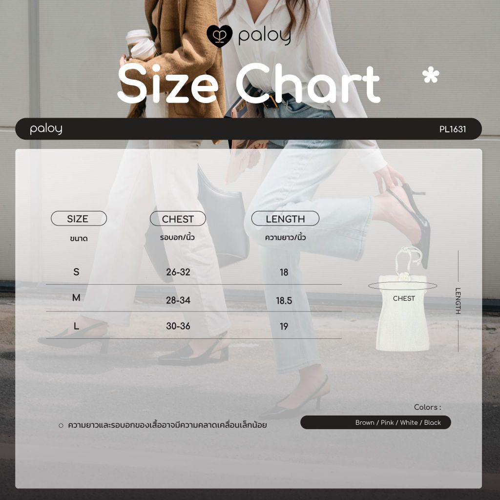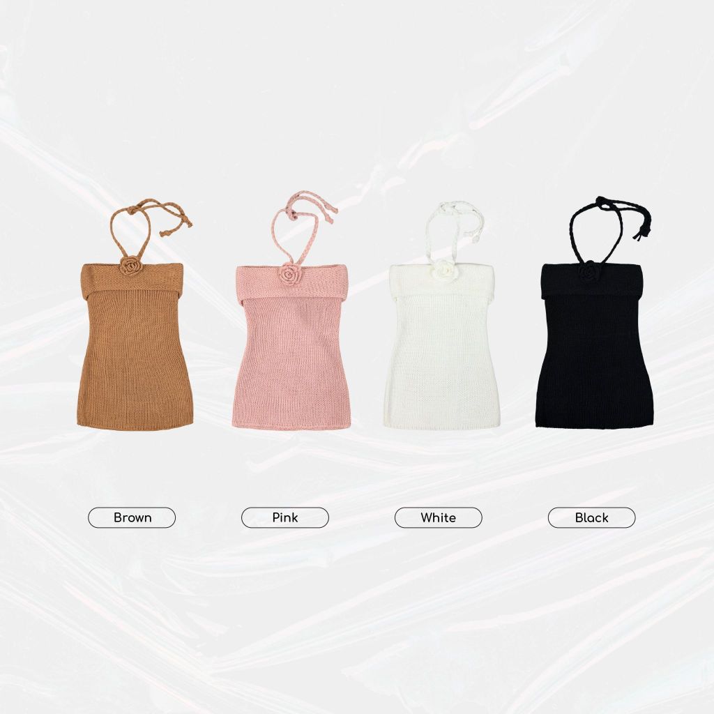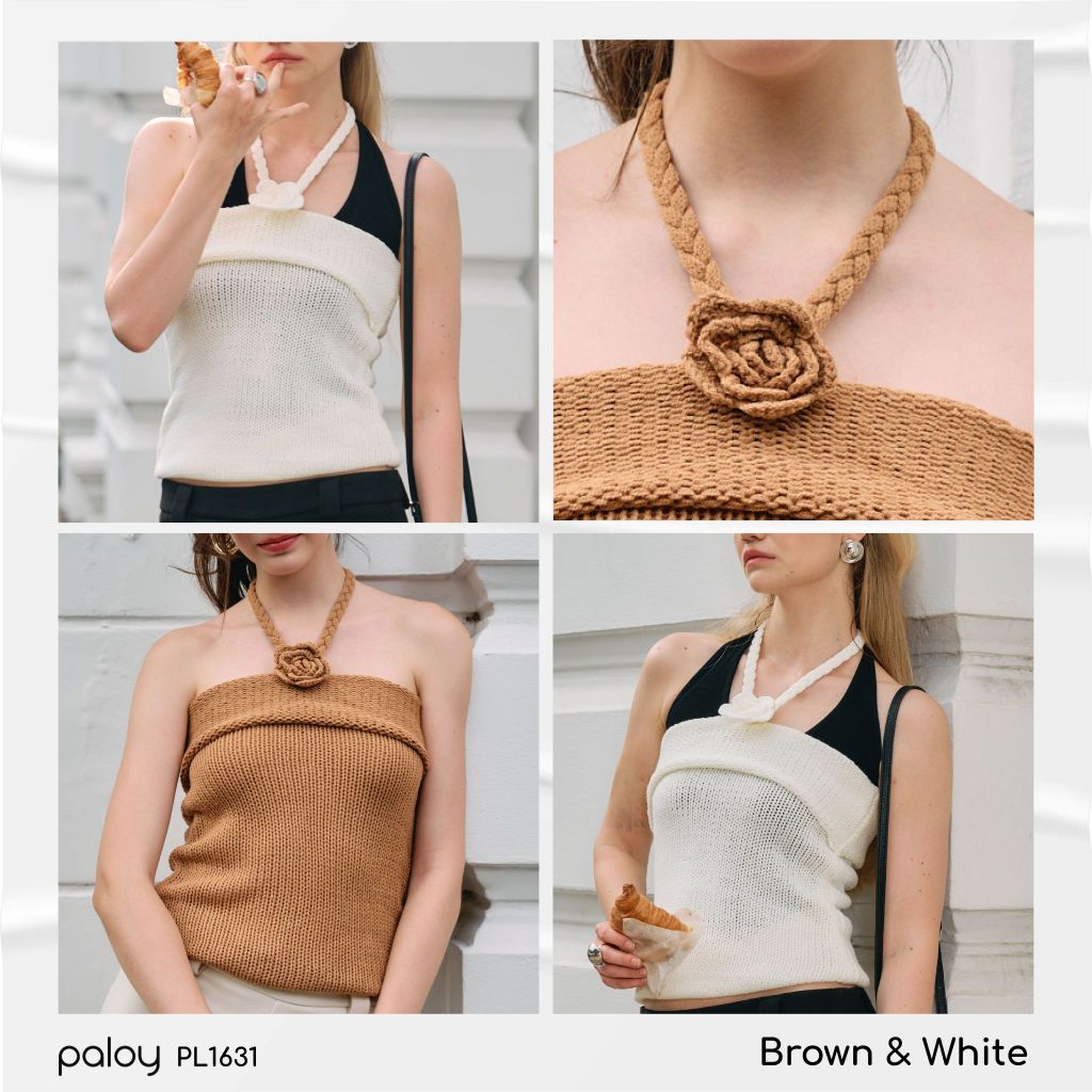 Paloy - PL1631 เสื้อเกาะอกไหมพรม มีสายคล้องคอแต่งดอกไม้