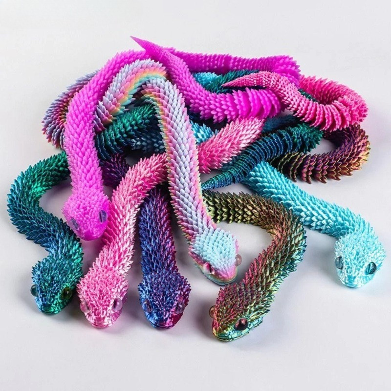 3D พิมพ์งูหลายสีสัตว์ PLA ของเล่น 22 ซม.หมุนได้สนุกและตลกจําลองงูตกแต่งบ้านฮาโลวีน