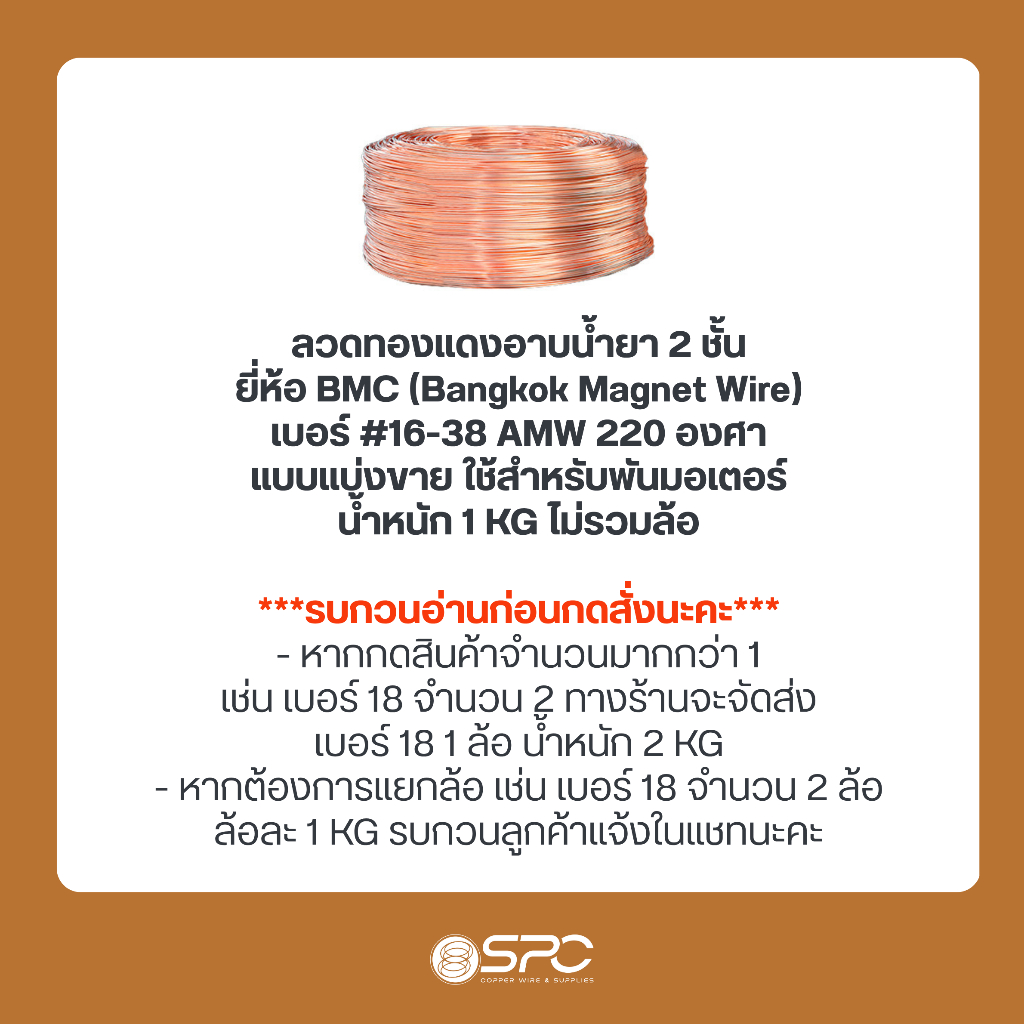 (น้ำหนัก 1 KG) ลวดทองแดงอาบน้ำยา 2 ชั้น เบอร์ #16-38 AMW 220 องศา แบ่งขาย สำหรับพันมอเตอร์