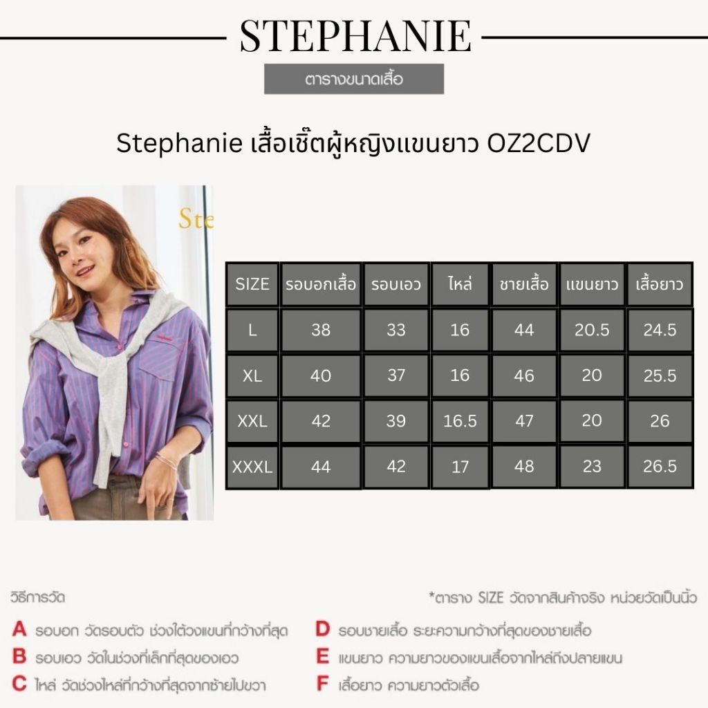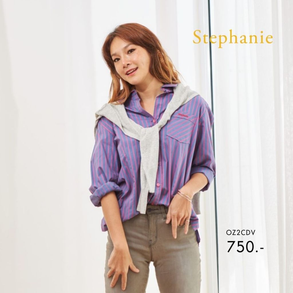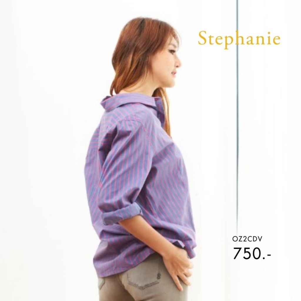 Stephanie เสื้อเชิ๊ตผู้หญิงแขนยาวสีม่วง ชมพู OZ2CDV