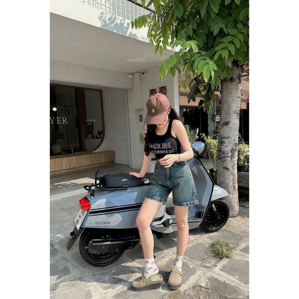 Babarry On Street - กางเกงขาสั้น (Short Denim) ผู้หญิง เอวสูง ผ้าไม่ยืด ทรงสวย เท่ห์มีสไตล์