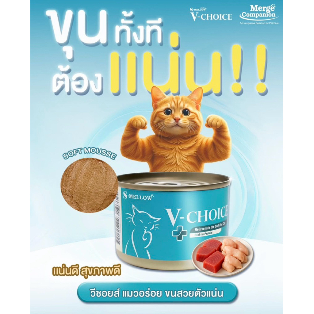 S Mellow V-Choice วีชอยส์ อาหารแมวกระป๋อง ขนสวย ตัวแน่น ล้ามเนื้อแน่นเฟิร์ม อร่อย มาใหม่📍ยกลัง/กระป๋อง