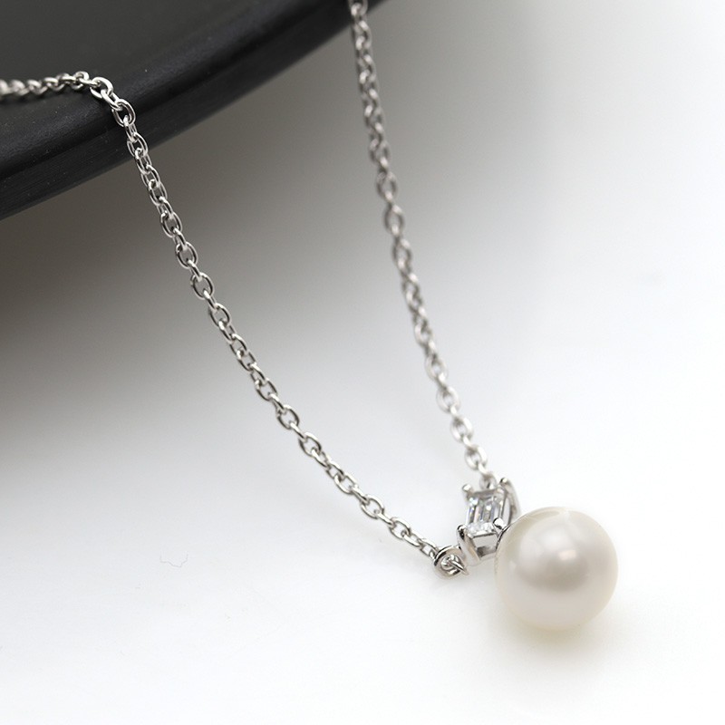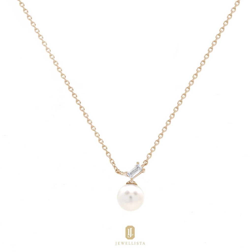 Jewellista สร้อยคอเงินแท้ 925 ประดับจี้ไข่มุกและพลอย CZ รุ่น Irina