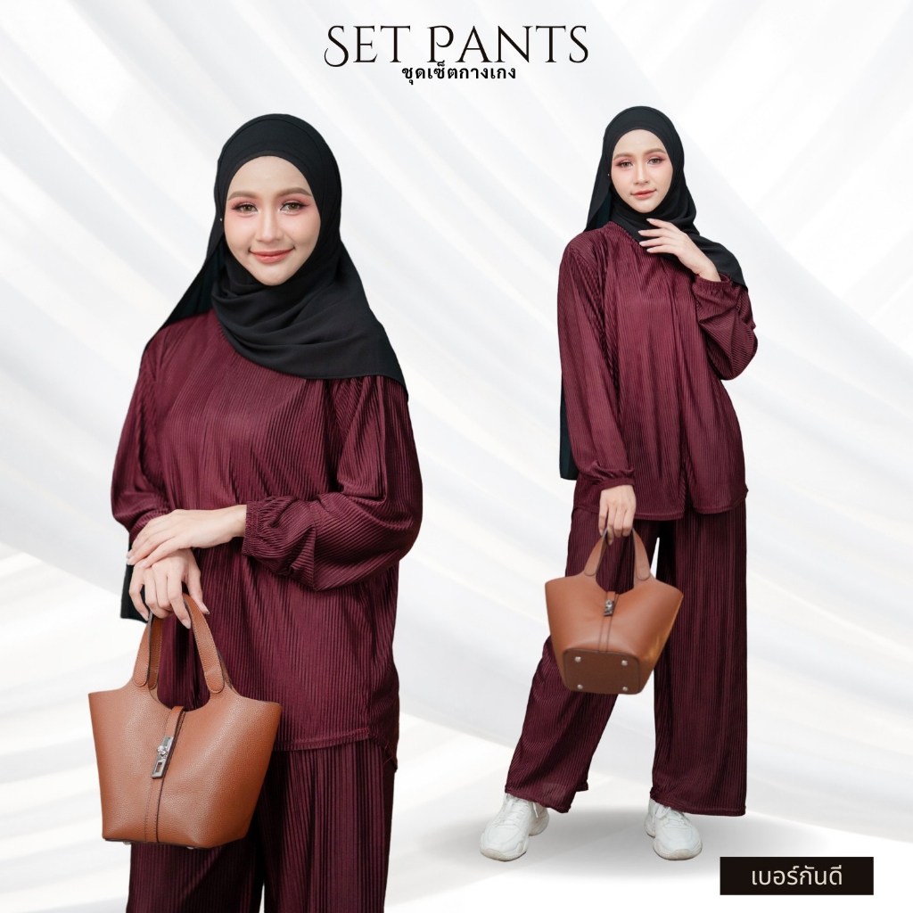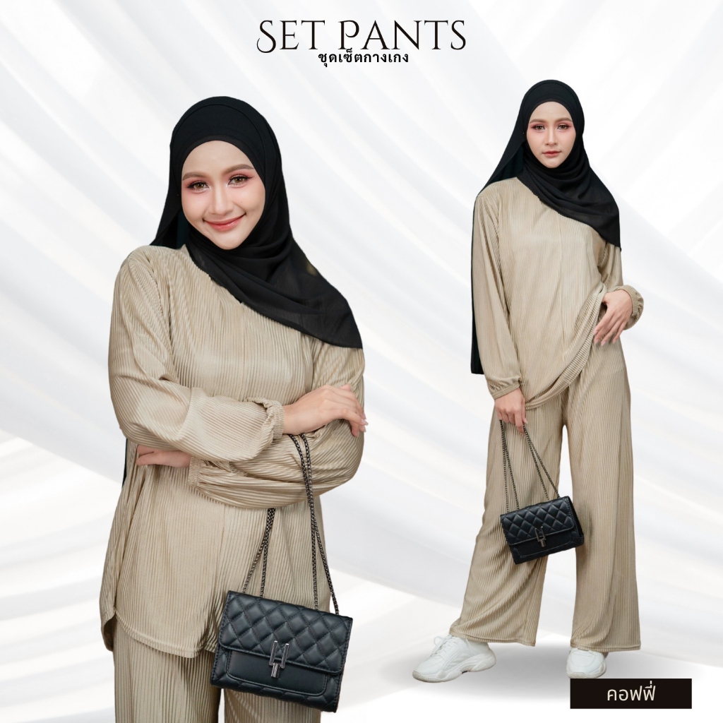 ชุดเซ็ตมุสลิม เซ็ทเสื้อกางเกง มีสไตล์น่ารักๆ ผ้ายืดร่อง ใส่ง่ายได้หลายๆโอกาส IN18 รุสมีนีมุสลิม