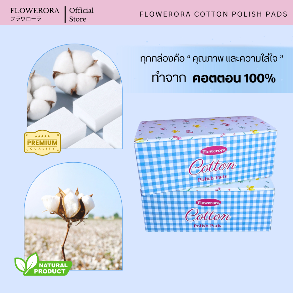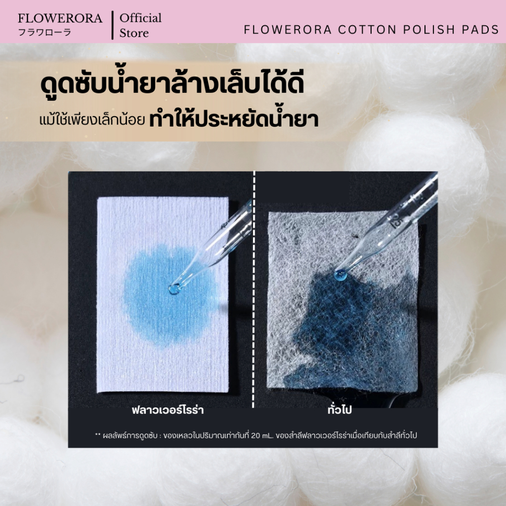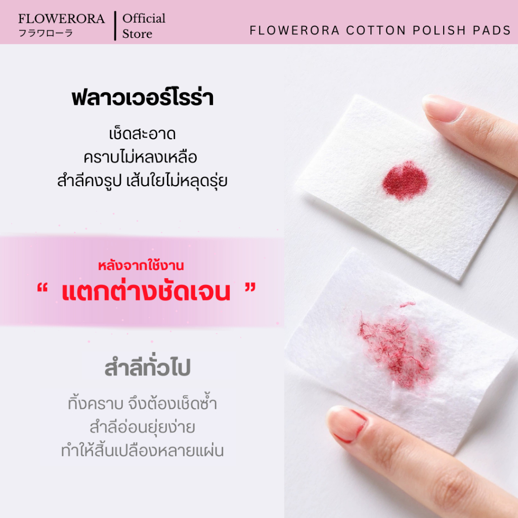 สำลีแผ่นไร้ขน คุณภาพสูง สำหรับเช็ดล้างเล็บ ไม่ทิ้งเศษขุย FLOWERORA Cotton Polish Pads
