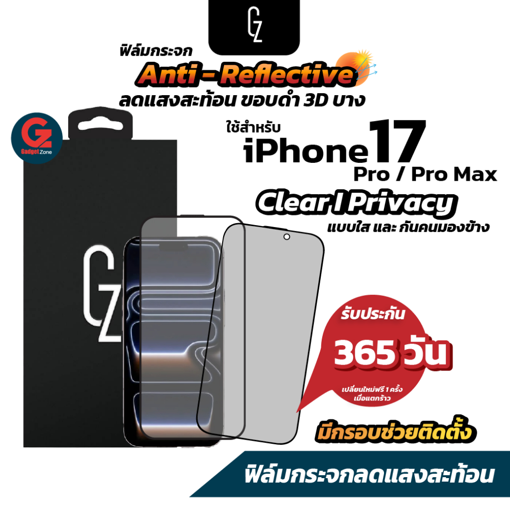 (ส่งด่วนกทม) GZ Supreme Edition ฟิล์มกระจกใสเต็มลดแสง จอขอบดำบาง Clear I Privacy สำหรับ iPhone17 Pro/Pro Max