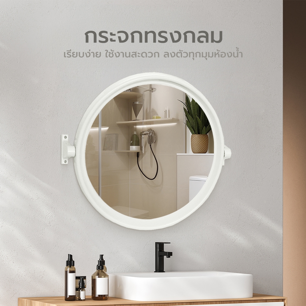 [ส่งจากไทย] กระจก ห้องน้ำ เดี่ยว แบบกลม แบบเหลี่ยม สีขาว กระจกแท้ ไม่หลอกตา