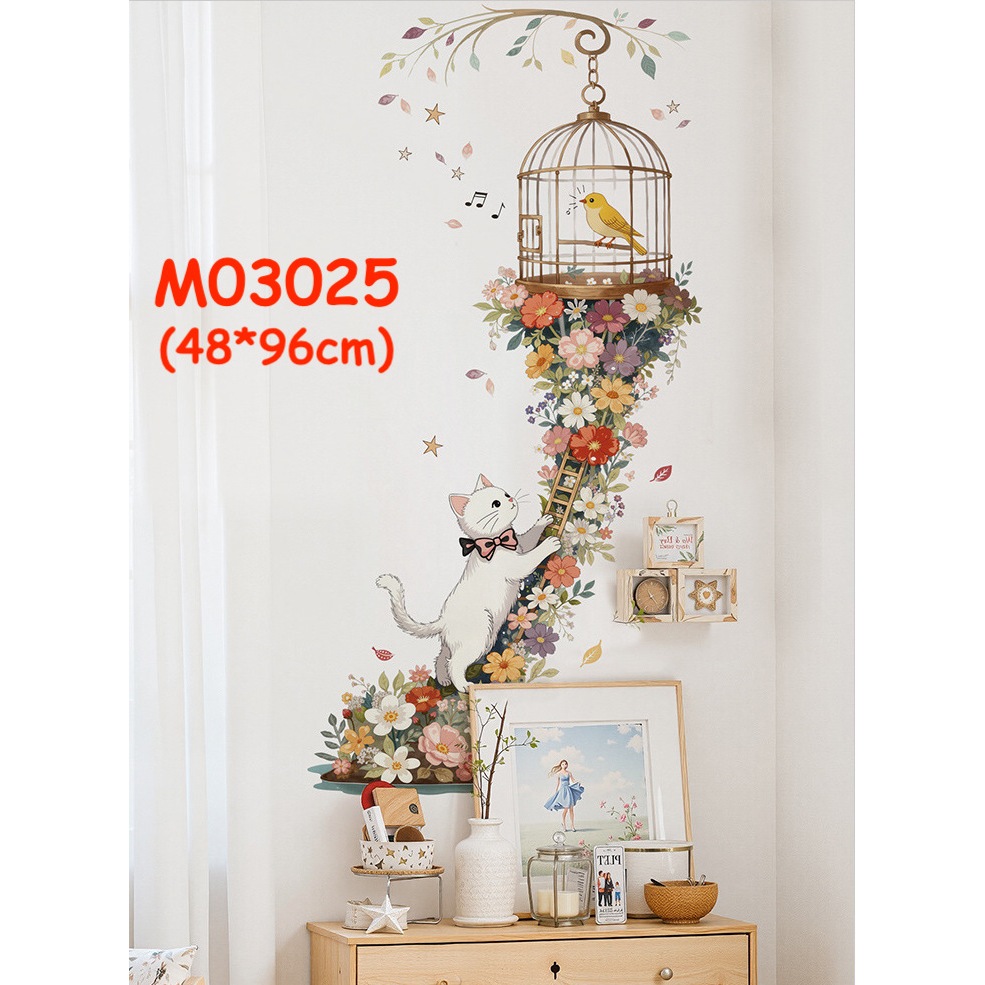 Sticker Home สติ๊กเกอร์ติดผนัง สติกเกอร์ติดกระจก กรงนก ลายดอกไม้ สติ๊กเกอร์ต้นไม้ แต่งบ้าน ส่งจากไทย