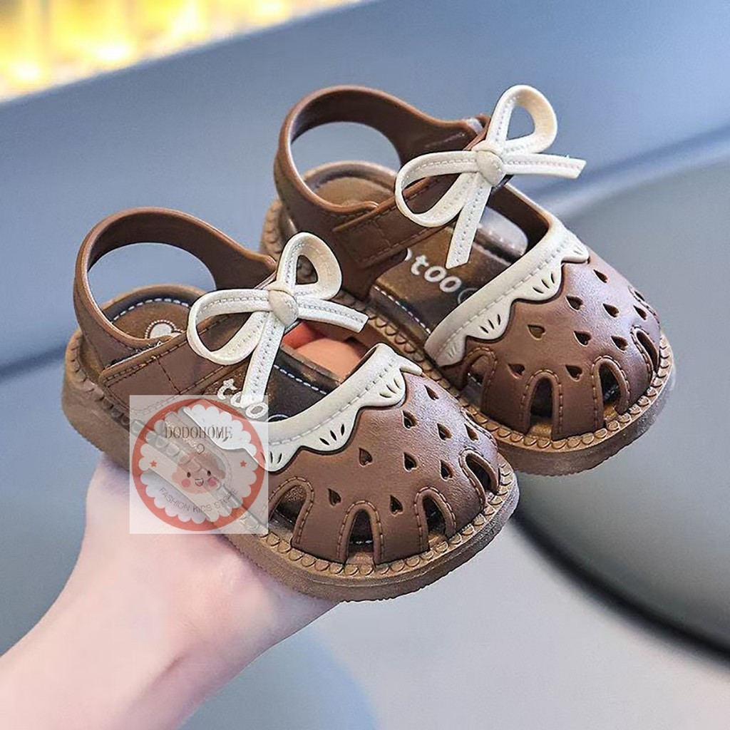 รองเท้าแฟชั่นเด็ก รองเท้ารัดส้น ติดโบว์สำหรับเด็กผู้หญิง วัสดุPVC