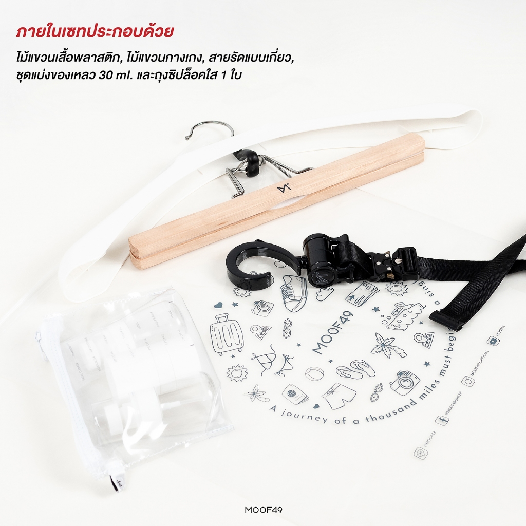 MOOF49 Clothes Hanger Set เซทไม้แขวนเสื้อ/กางเกง พร้อมสายรัดแบบหัวเกี่ยว