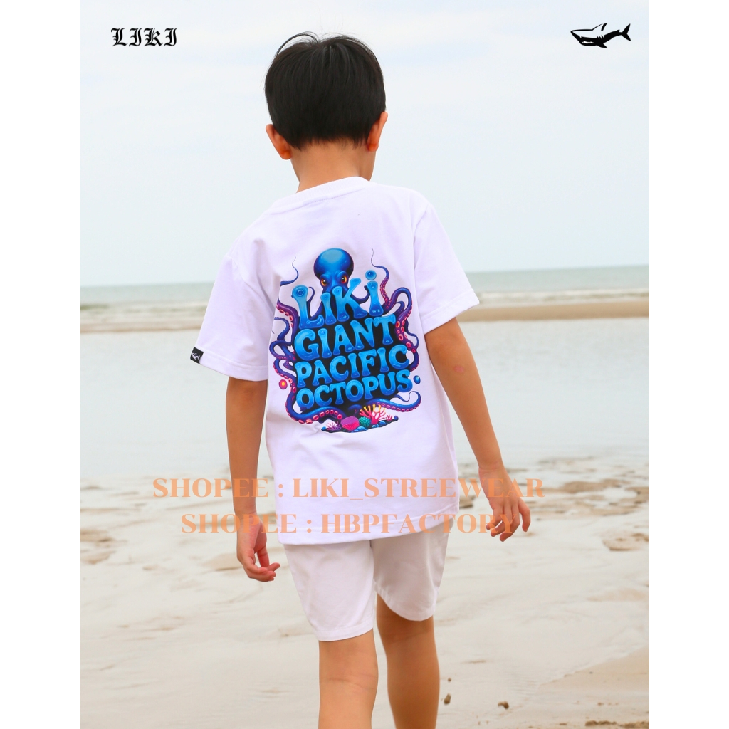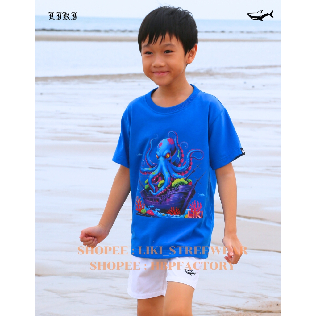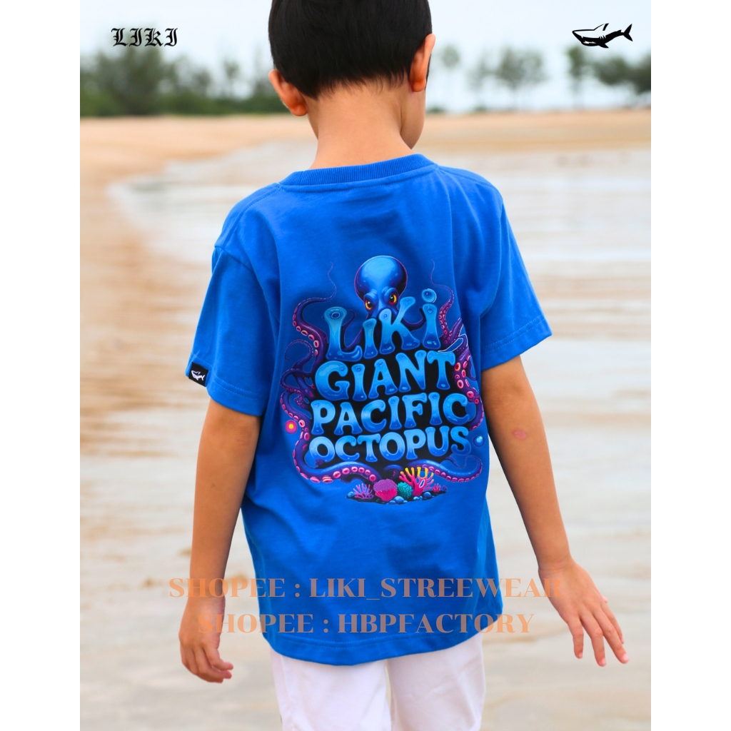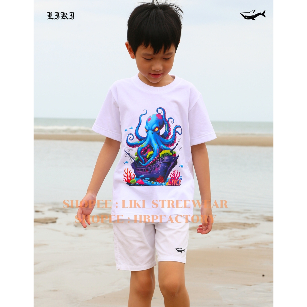 เสื้อยืดเด็กรุ่น Liki x Giant Pacific Octopus เสื้อยืดลายปลาหมึกยักษ์สีสันจัดจ้าน ใส่แล้วเท่ไม่ซ้ำใคร