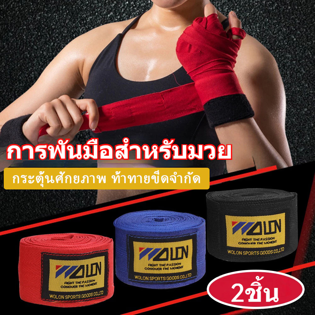 ผ้า้าพันมือมวยไทยคู่ (ชาย+หญิง) | เนื้อผ้าแน่น 5.5 เมตร | ฝึกซ้อม-แข่งจริง | ซักเครื่องได้✅ แพ็ค2ชิ้น