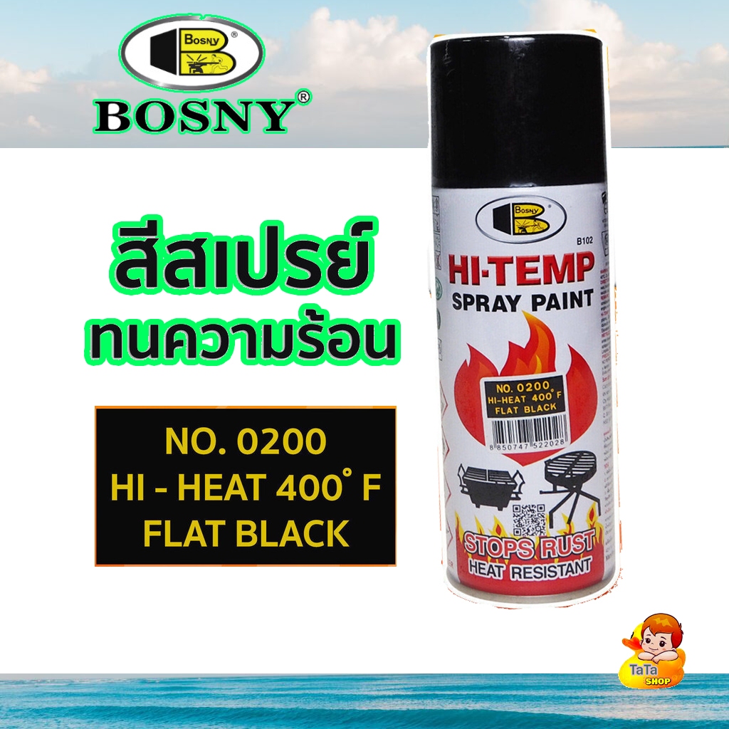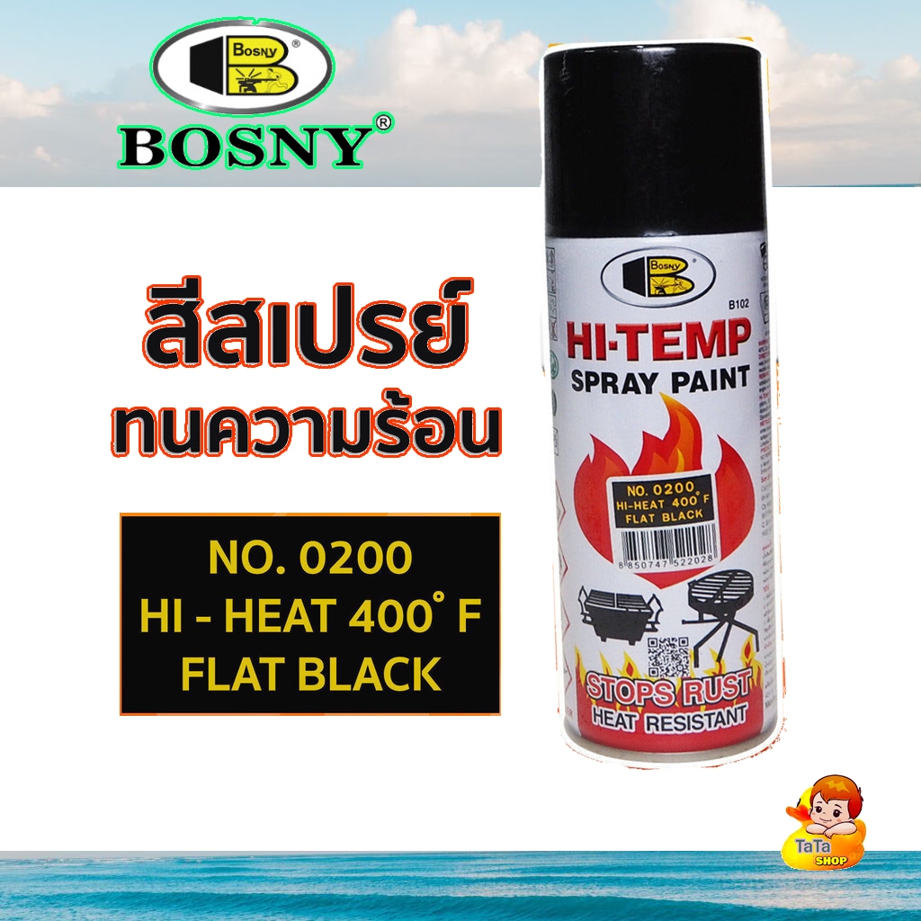 สีสเปรย์ทนร้อน สีทนความร้อน สีดำด้าน No.0200 Bosny hi-heat 400°F ขนาด 400 มล. G25-04 ราคาประหยัด