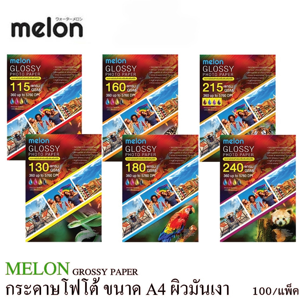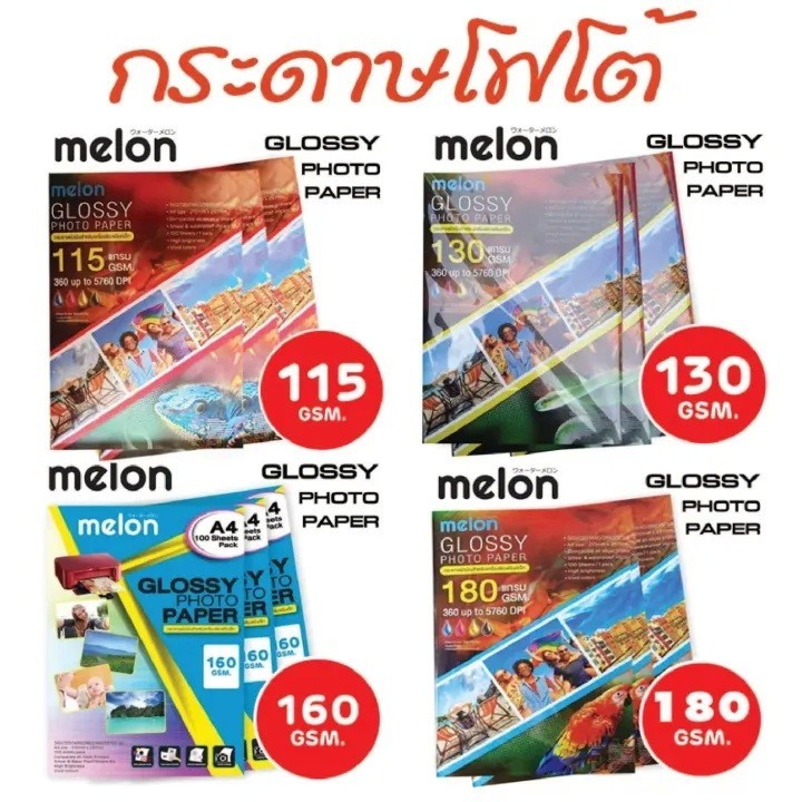 MELON GLOSSY PHOTO-Sticker Glossy 155/130/160/180/215/240 Grams (100 แผ่น) กระดาษโฟโต้