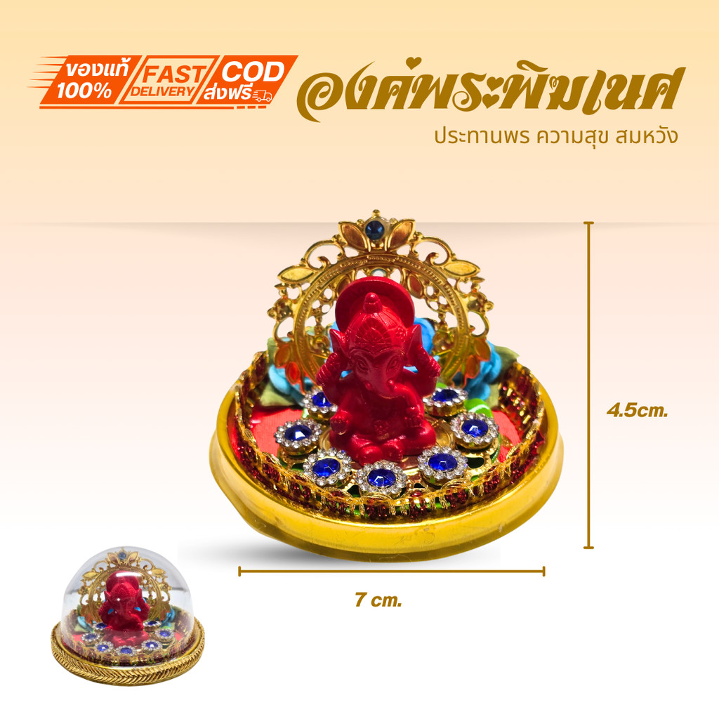 พระพิฆเนศปางประทานพร สมหวัง ตกเเต่งเพรชล้อมรอบ บนพานถวาย ภาพถ่ายจากสินค้าจริงได้พร้อมฐานพาน