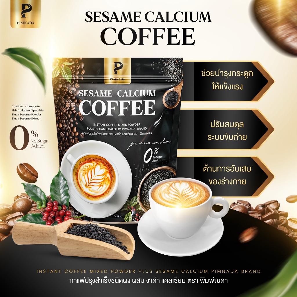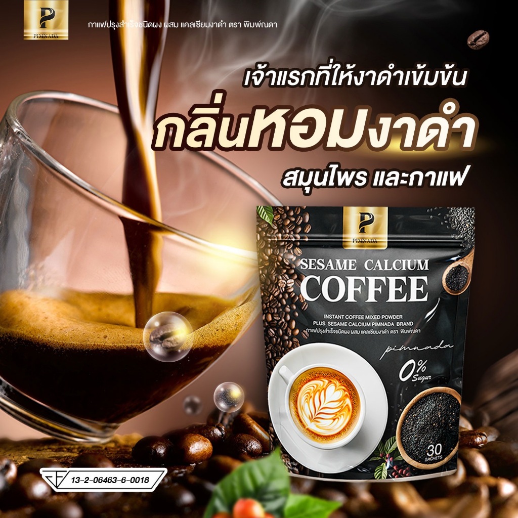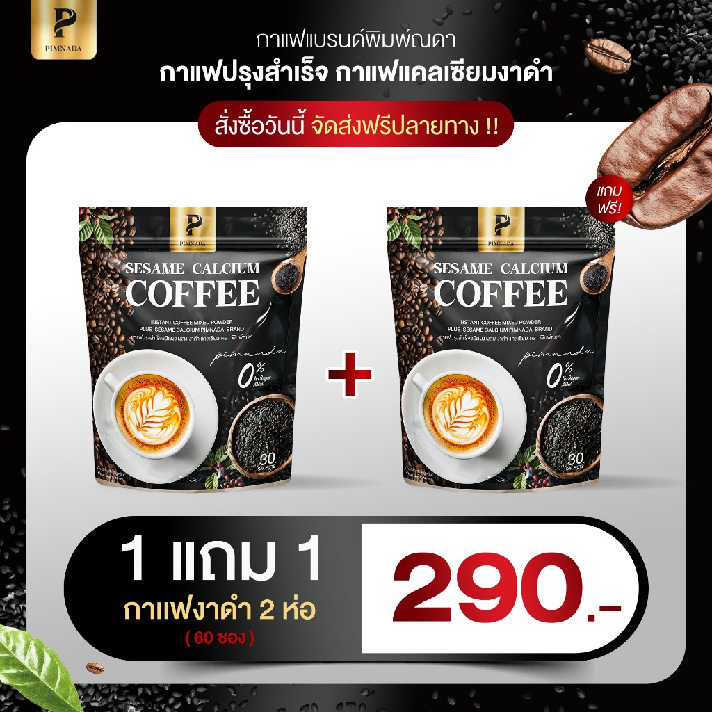(1แถม1)กาแฟงาดำแคลเซียม แบรนด์ พิมพ์ณดา sesame calcium pimnada