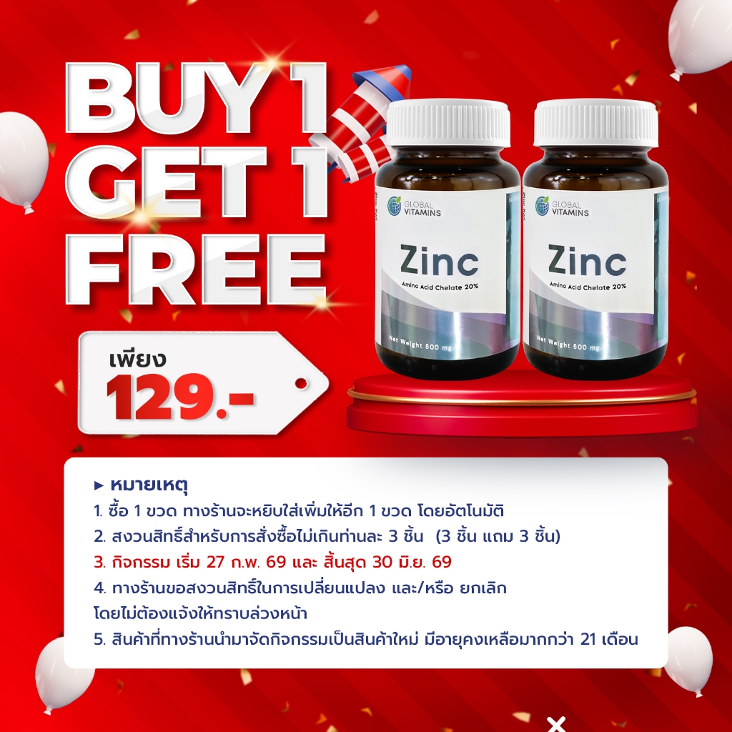 [ซื้อ 1 แถม 1] ซิงค์ โกลบอลวิตามิน Zinc Global Vitamins ซิงค์วิตามิน แร่ธาตุสังกะสี