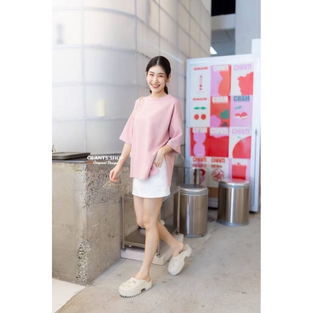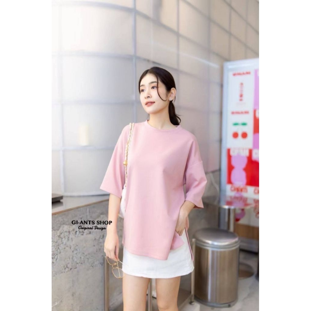 GI-ANTS (หน้าผ้า46") เสื้อยืดคอกลมผ่าข้างทรงOversizeไหล่ตก