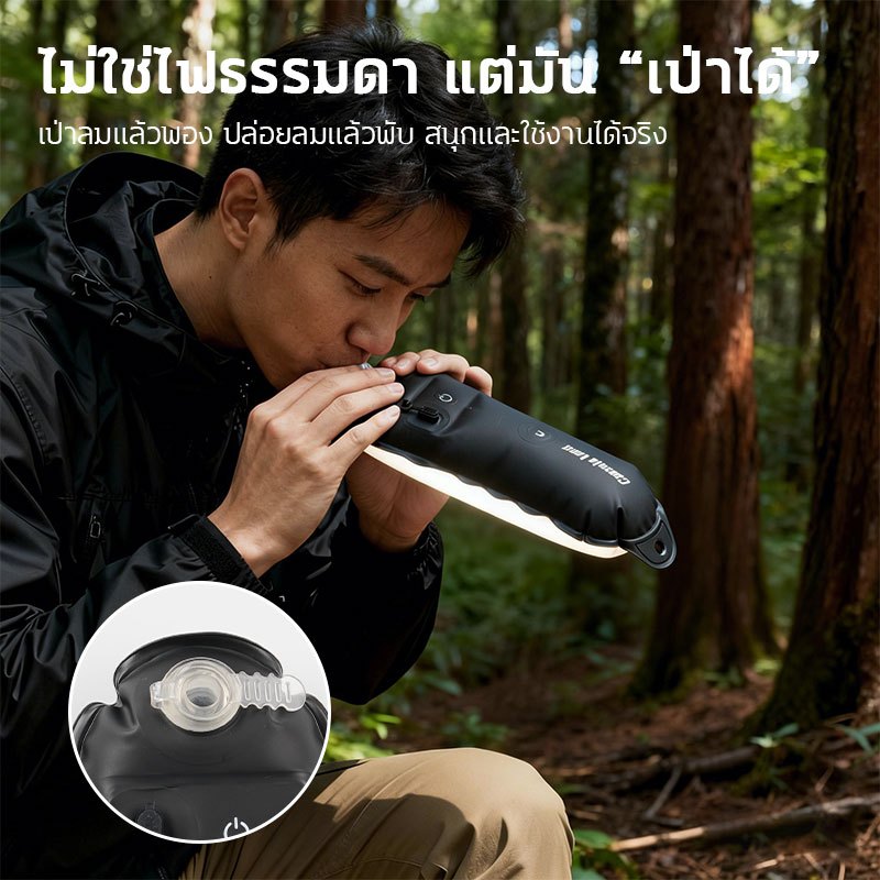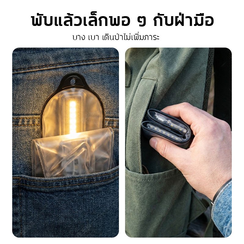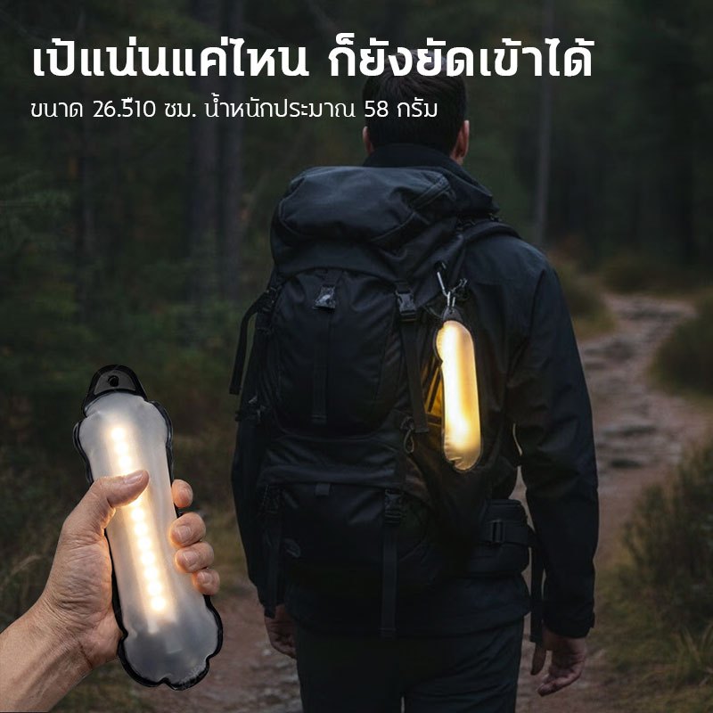 ไฟแคมป์ปิ้งเป่าลม TPU น้ำหนักเบา แม่เหล็กแรง ชาร์จ Type-C IP66 เหมาะเดินป่า/แคมป์