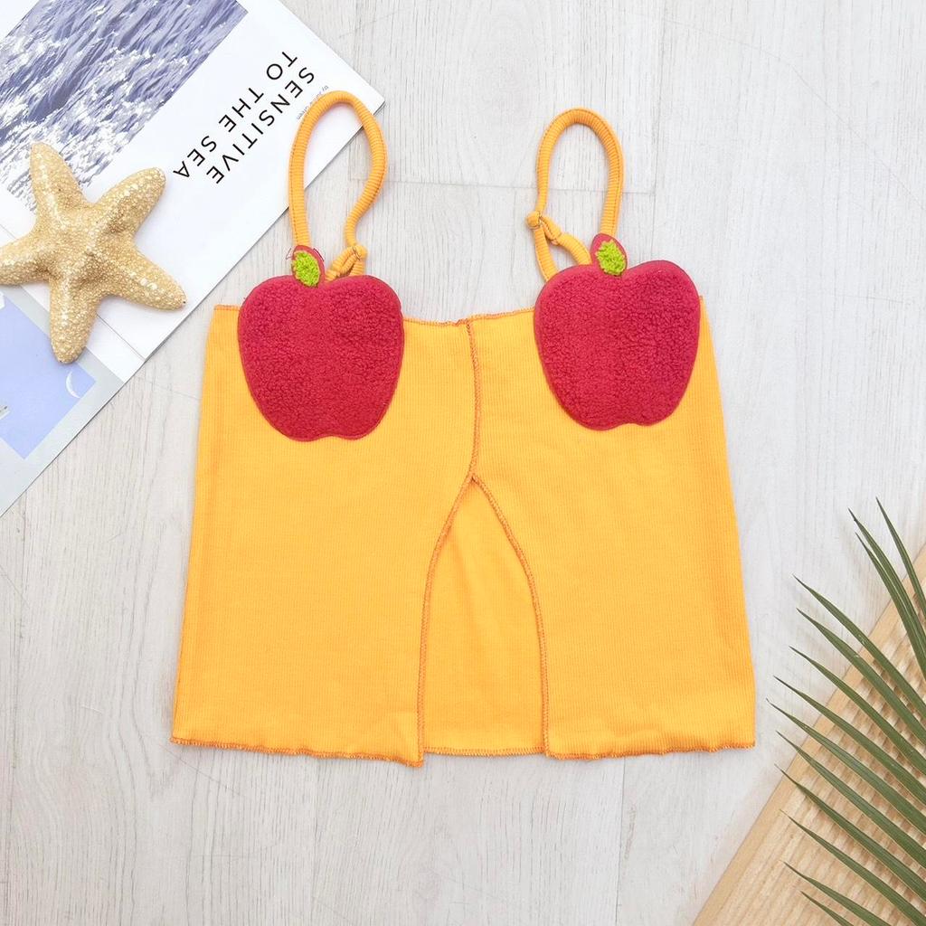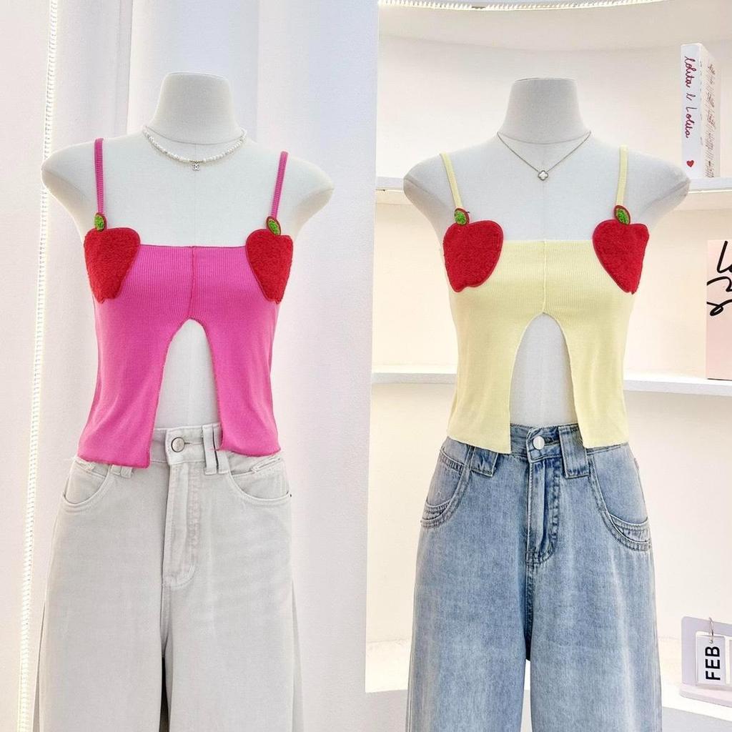 KN.Clothes เสื้อสายเดี่ยว แอปเปิ้ลหน้าอก เว้าด้านหน้า เนื้อผ้าร่องยืด สายปรับได้ G-Rose