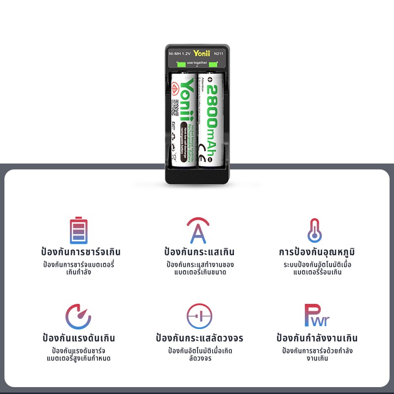 เครื่องชาร์จแบตเตอรี่ Yonii N211 1.2V NiMH AA/AAA, เครื่องชาร์จแบตเตอรี่สองช่องอัจฉริยะ LED