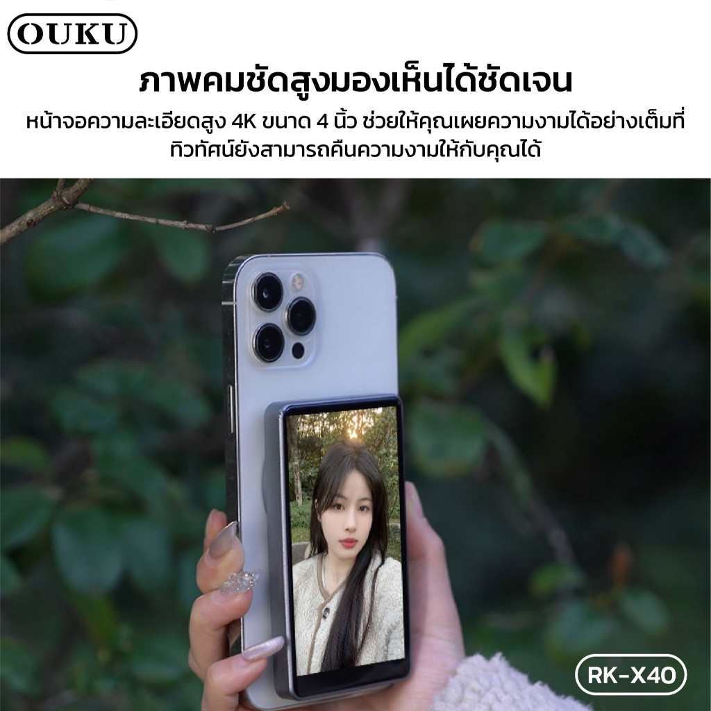 กล้องถ่ายด้านหลังแม่เหล็กไร้สาย OUKU X40L ปรับความสว่างได้ จอขนาดใหญ่ 1800mAh คุณภาพดี แข็งแรง ทนทาน