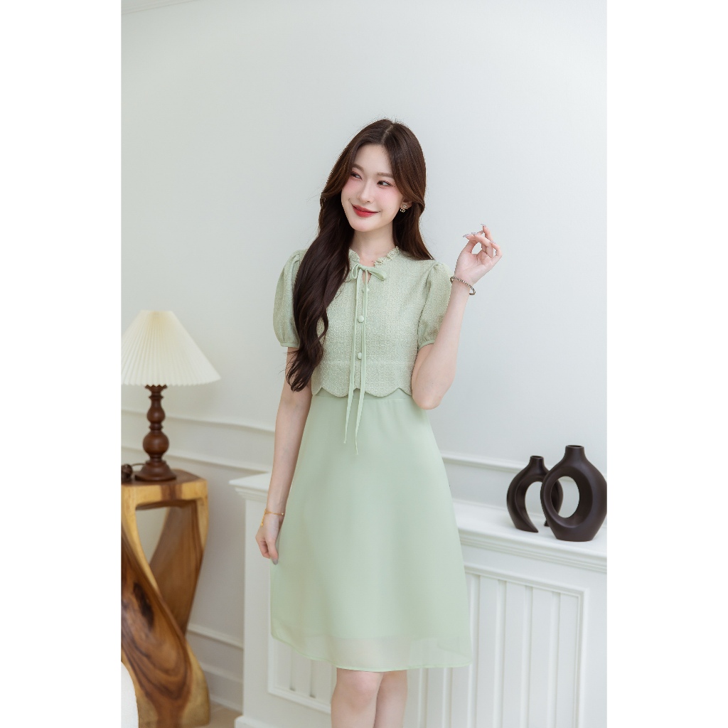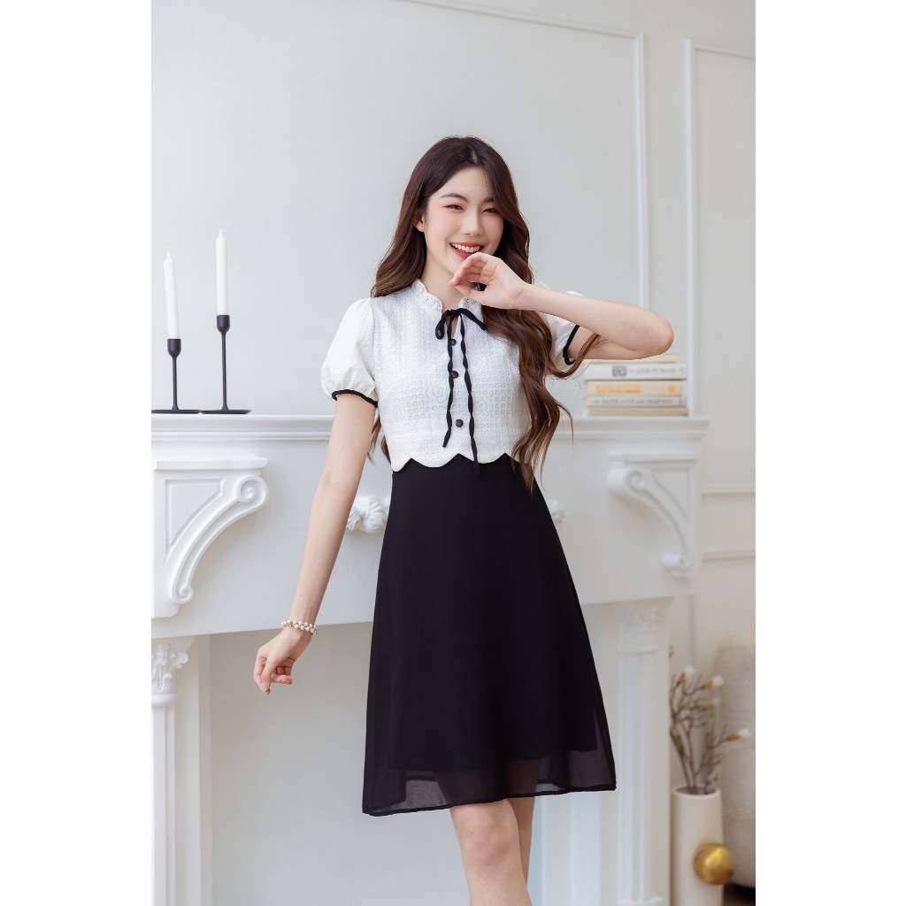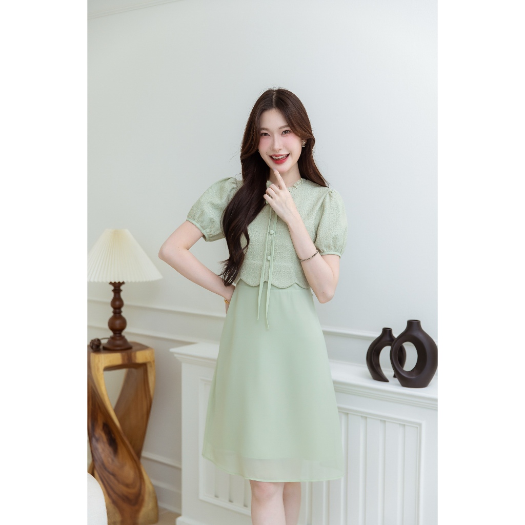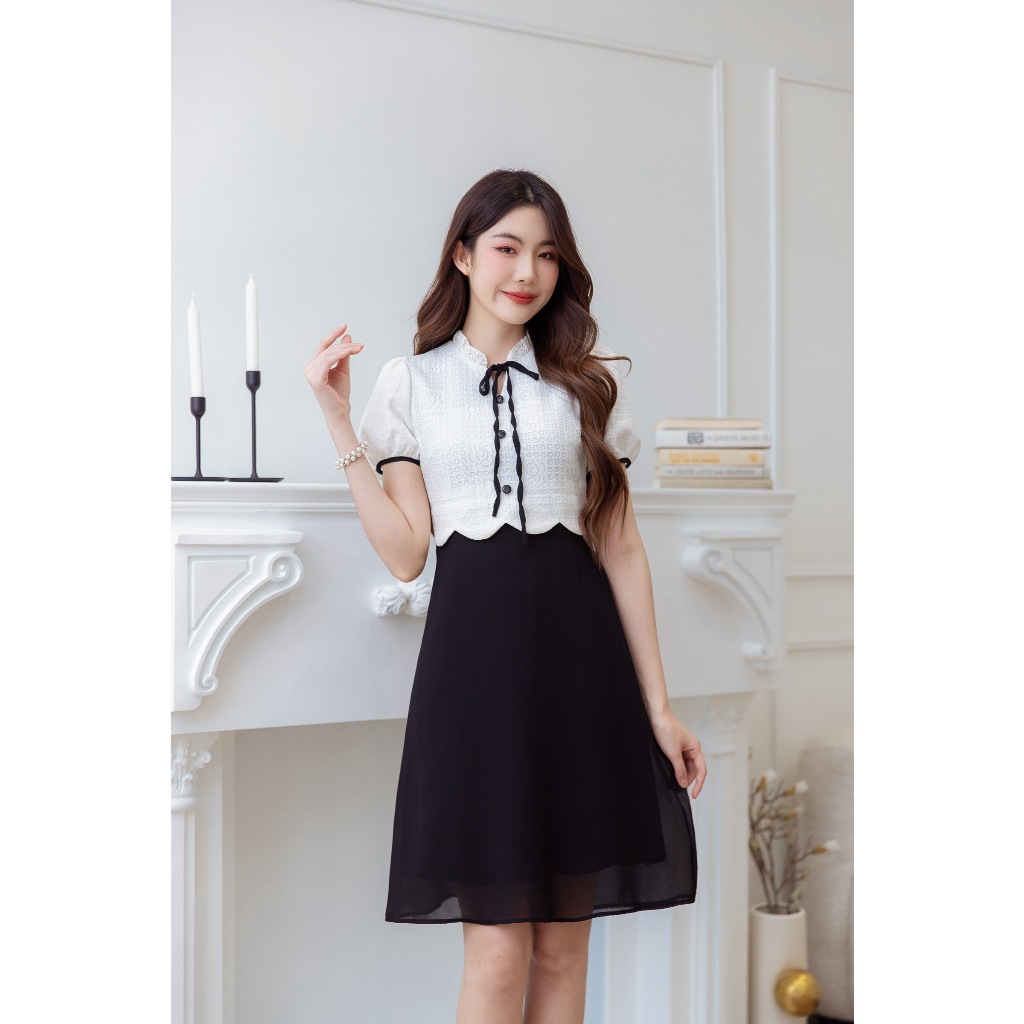 เดรสลูกไม้กระโปรงชีฟอง สวยเรียบดูดี แนะนำเลยค่ะ เป็นเดรสเสื้อลูกไม้ตัดต่อกระโปรงชีฟองสวยพริ้ว มีดีเทลเป็นเสื้อครอป