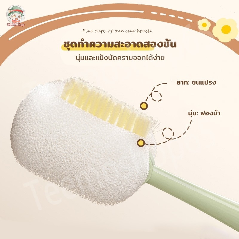 แปรงขวด หัวแปรง5in1 แปรงถ้วย แปรงล้างขวด แปรงล้างแก้ว แก้วทำความสะอาด