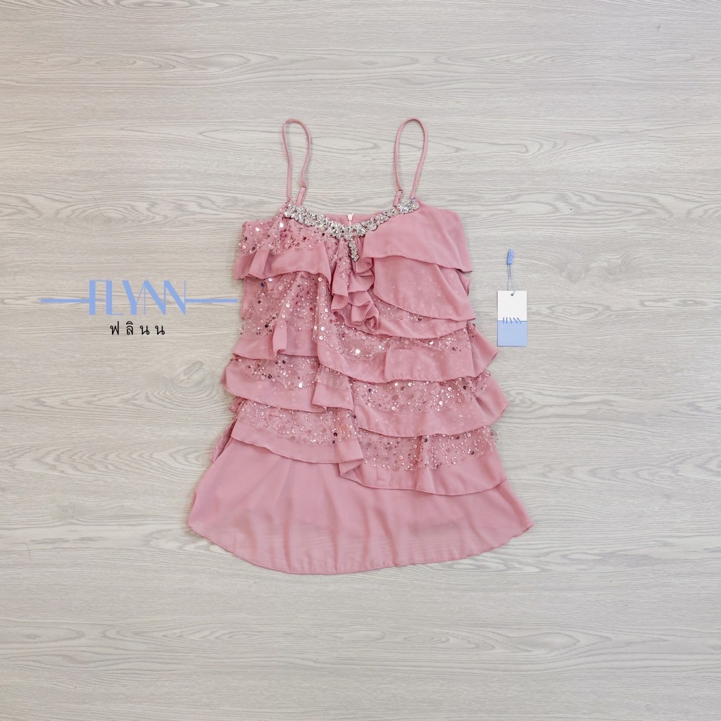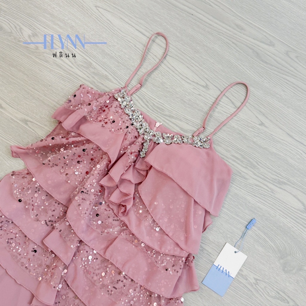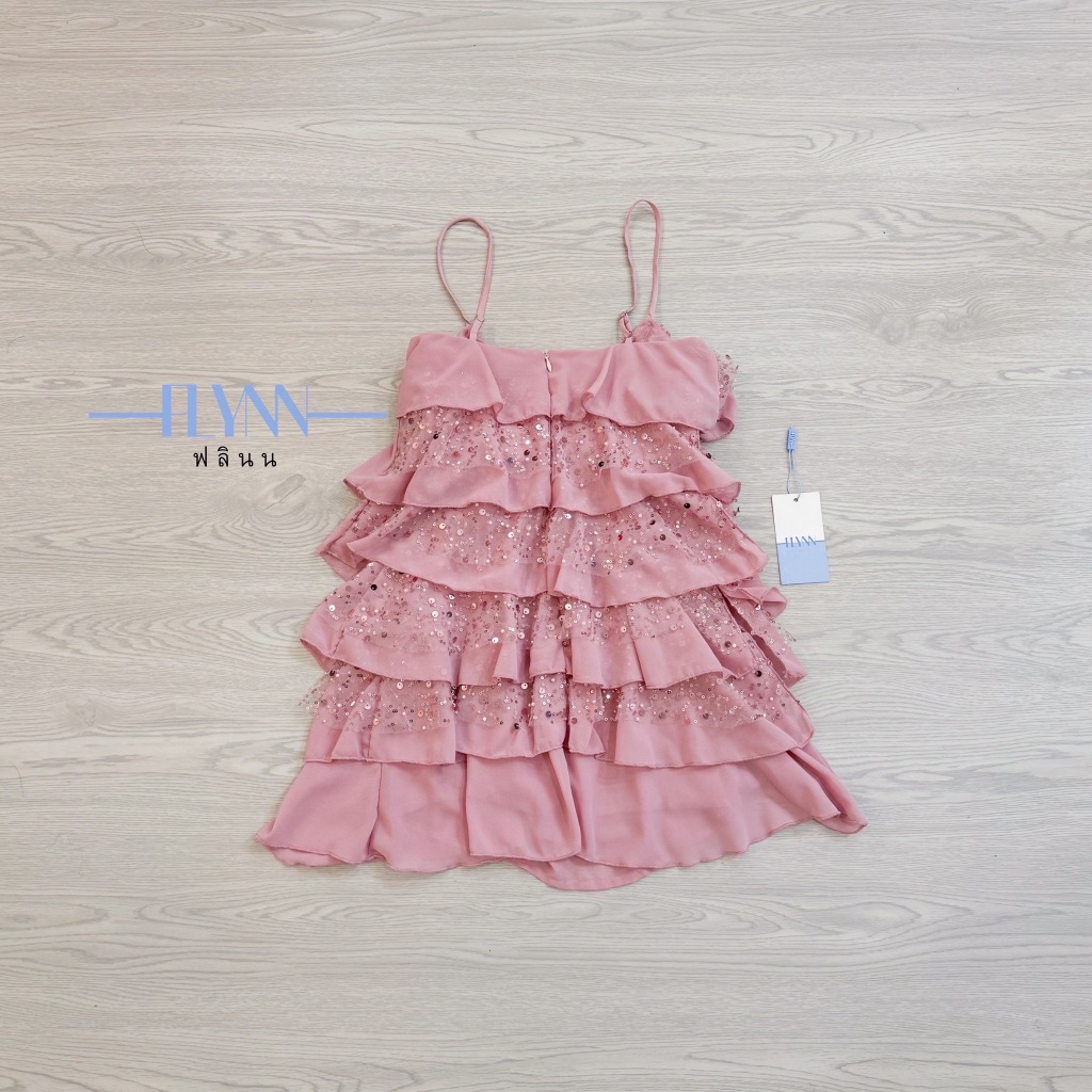 FLYNN :ชุดเดรสระบายทั้งตัวแต่งกริตเตอร์-Pink