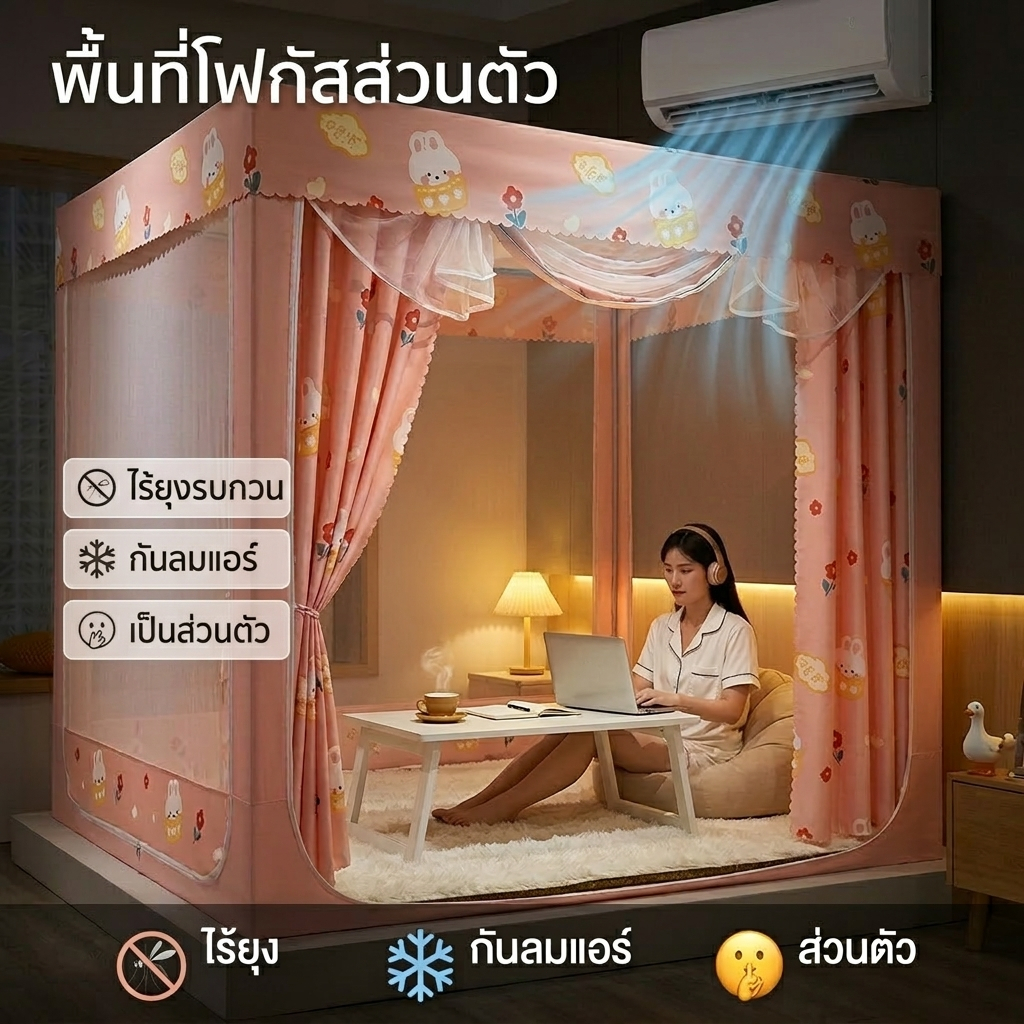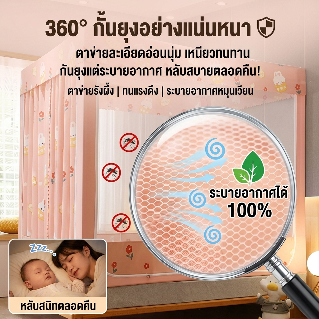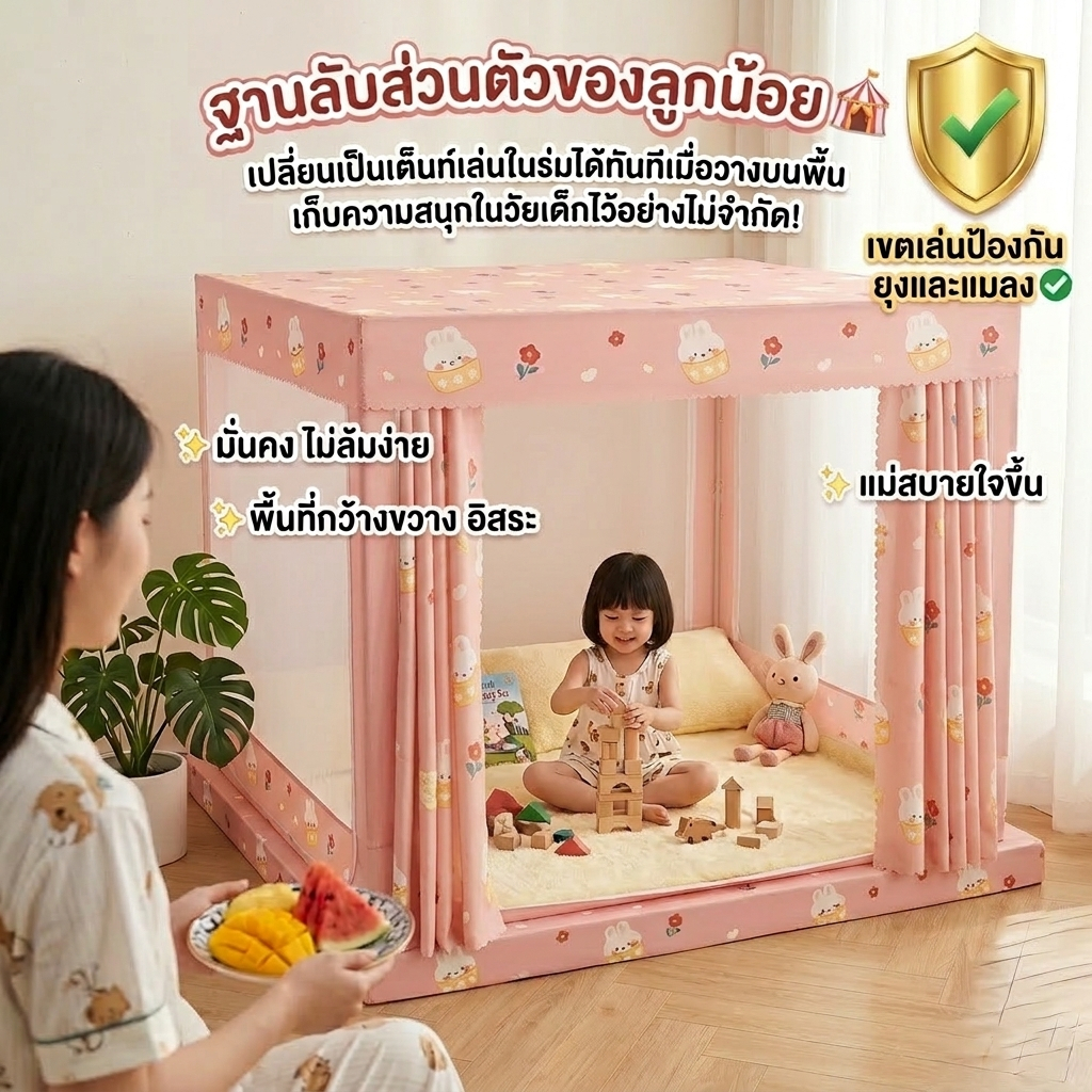BONAS บ้านเด็ก เต็นท์เด็ก มุ้ง 4ฟุต 5ฟุต 6ฟุต 6.6ฟุต กันแมลง 3ประตู พร้อมผ้าม่าน ป้องกันการตกของทารก