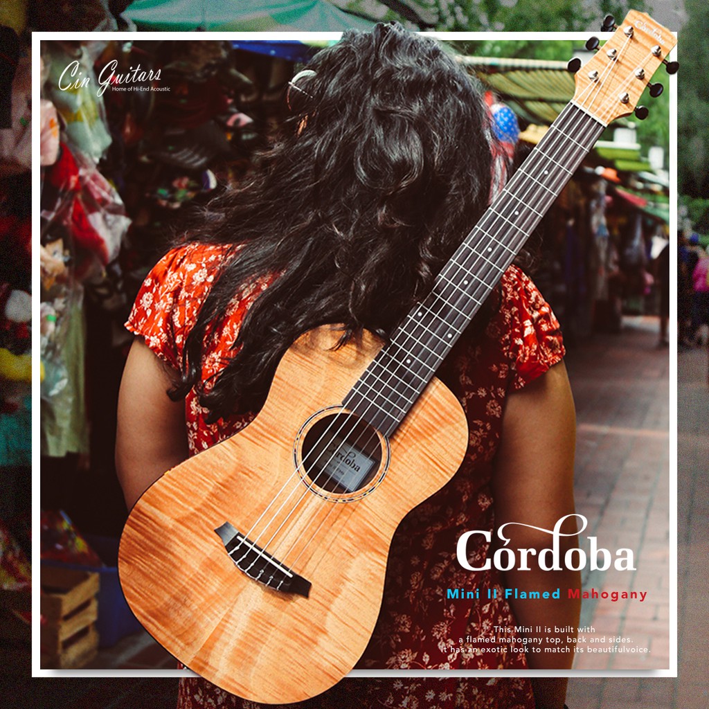 (ส่งฟรี) Cordoba Mini II FMH กีตาร์สายเอ็นทรงมินิ พร้อมกระเป๋า (All Flamed Mahogany, จูน E ปกติ)