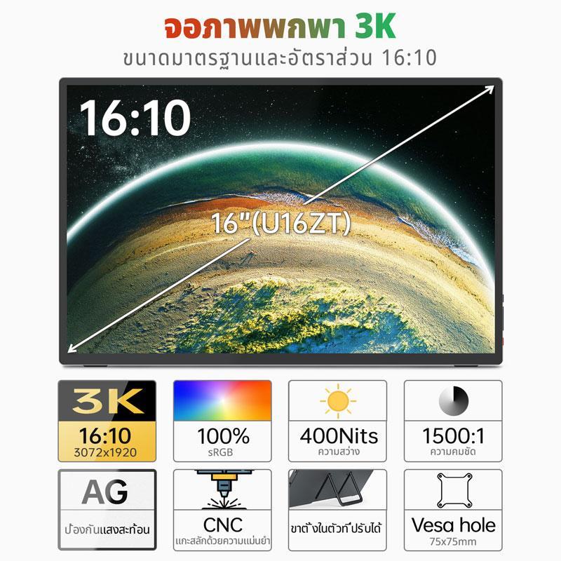 จอคอม จอมอนิเตอร์ Intehill 16 นิ้ว Portable Monitor จอคอมพิวเตอร์ PS4 U16ZT/U16ZA Q16ZB/Q16ZT สินค้ารับประกัน 3ปี