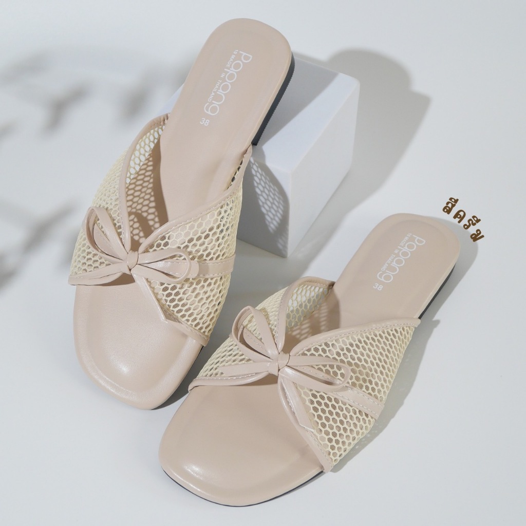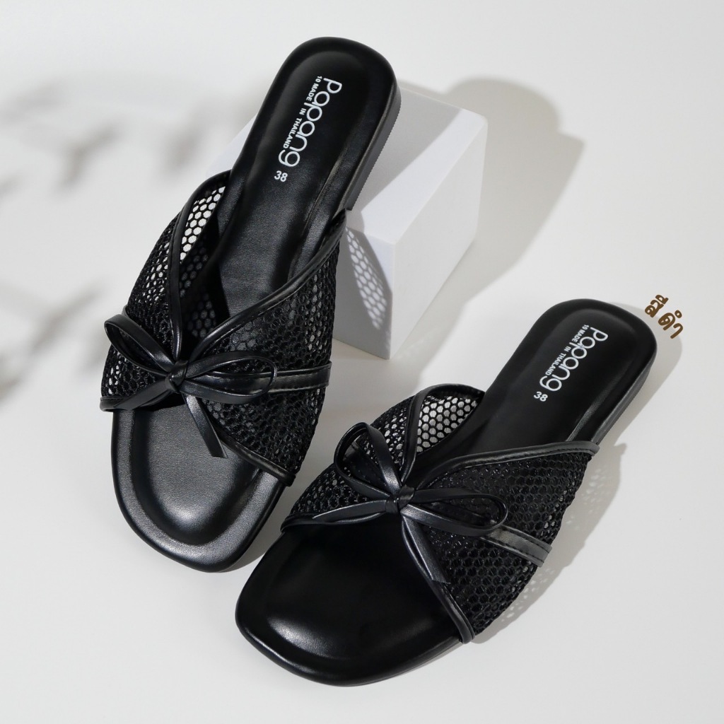 HL-744 รองเท้าแตะผ้าตาข่ายผูกตกแต่งโบว์ น่ารัก พื้นนุ่ม รองเท้าสวมใส่สบาย