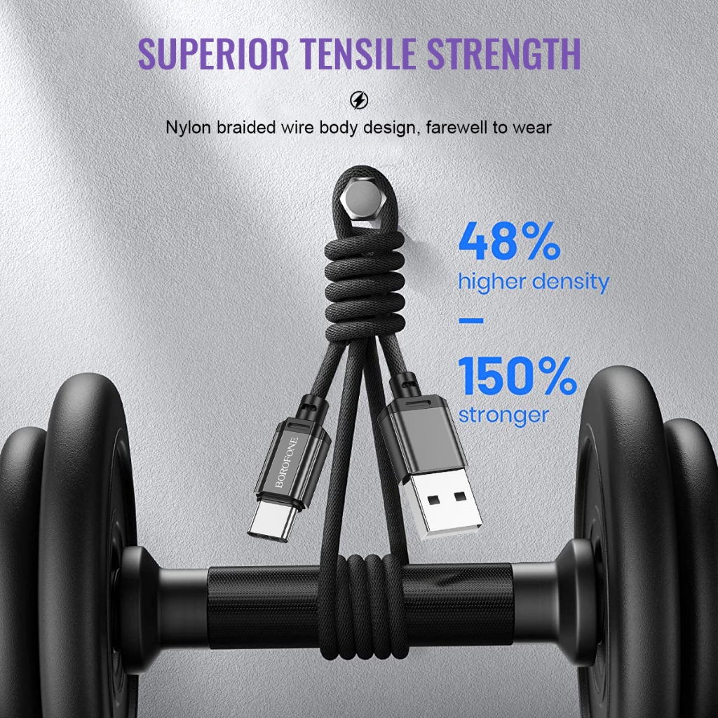 BOROFONE BX87 2.4A สายชาร์จ Micro TypeC Li [รองรับ 5-16 Pro maxl] สายเคเบิลข้อมูลแบบถัก ความยาว 1 เมตร