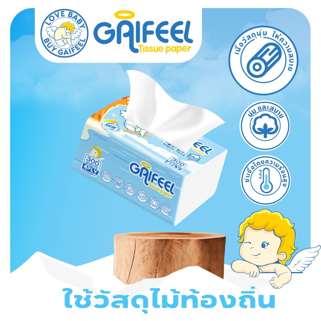 GAIFEEL กระดาษทิชชู่ 4 ชั้น แพ็คเดียว 300 แผ่น 20 แพ็ค 6000 แผ่น สำหรับใช้ในครัวเรือน
