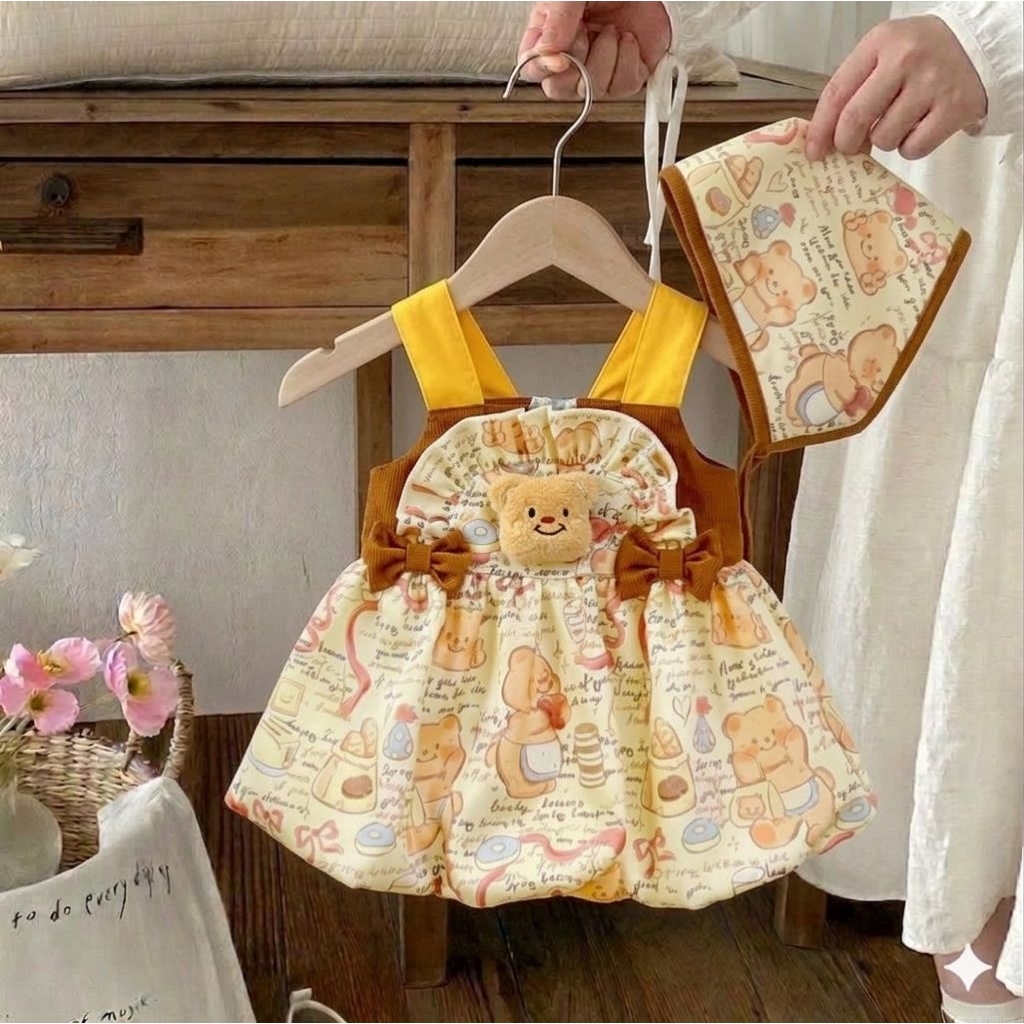 เดรสกระโปรงเด็กผู้หญิง แรกเกิดถึง18เดือน พร้อมผ้าโพกหัว