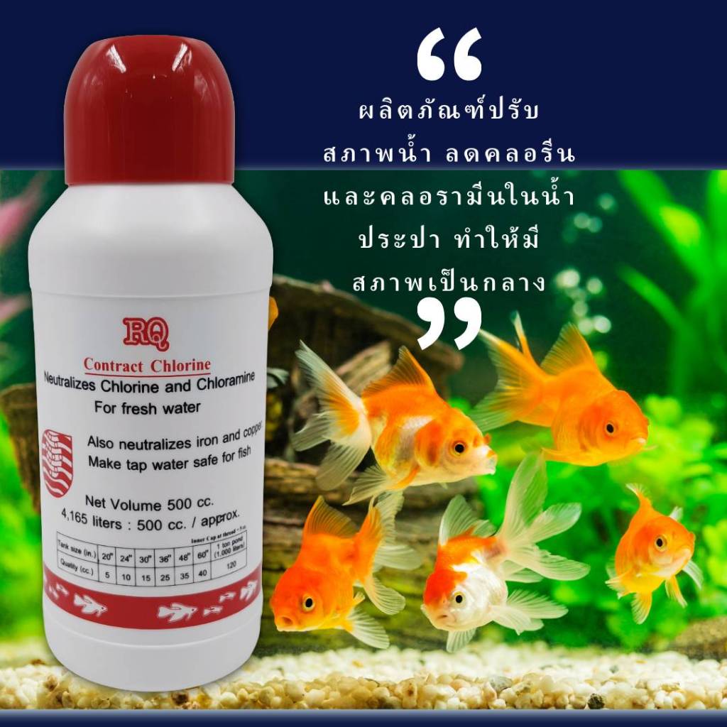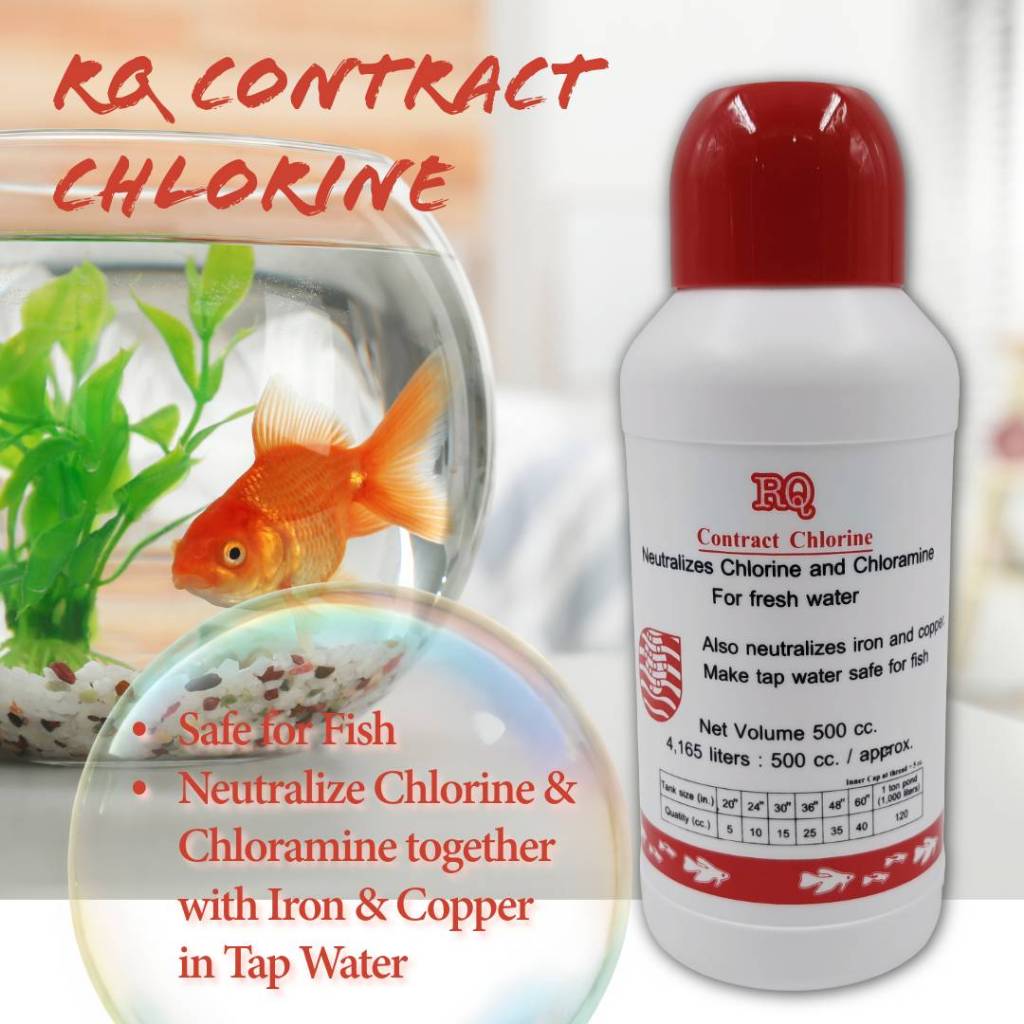 ผลิตภัณฑ์ปรับสภาพน้ำ RQ ลดคลอรีน RQ Contract Chlorine 500 ml. เตรียมน้ำสำหรับเลี้ยงปลาสวยงาม ขนาด 500 มล. ฝาสีแดง
