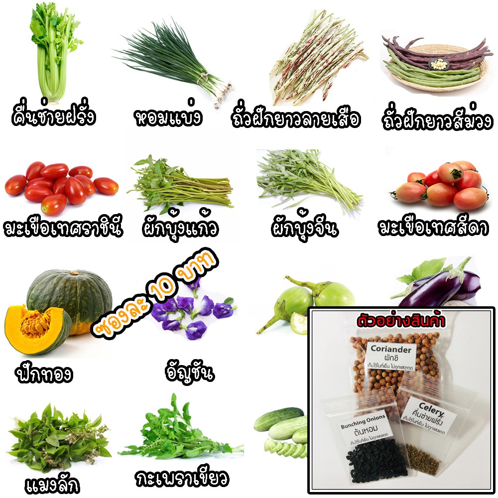 เมล็ดพันธุ์ผักสวนครัว ผักพื้นบ้าน 10 บาท / 12แถม2