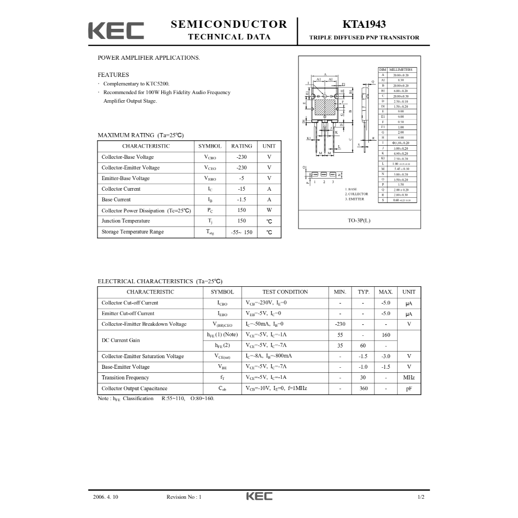 KTC5200,KTA1943 ของ KEC (1คู่)