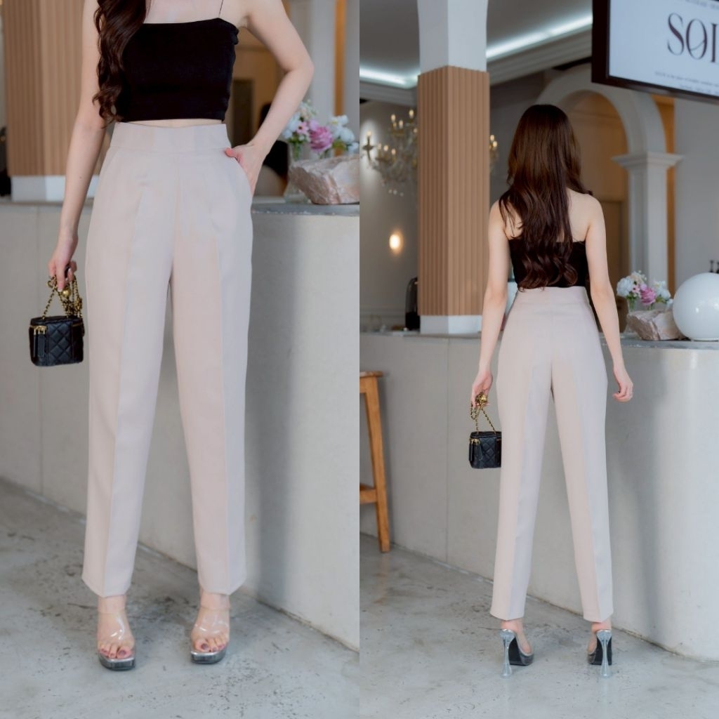 [HP] กางเกง 9 ส่วน กระบอกเล็กซิปข้าง เอวสูง ผ้าไมโคร ความยาว 37 นิ้ว (S-3XL)