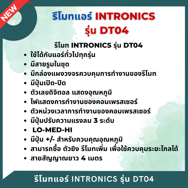 ชุดรีโมทคอนโทรลดิจิตอล INTRONICS รีโมทแอร์ เทอร์โม รูม DT04 มีสาย ไร้สาย กำลังไฟ220V.