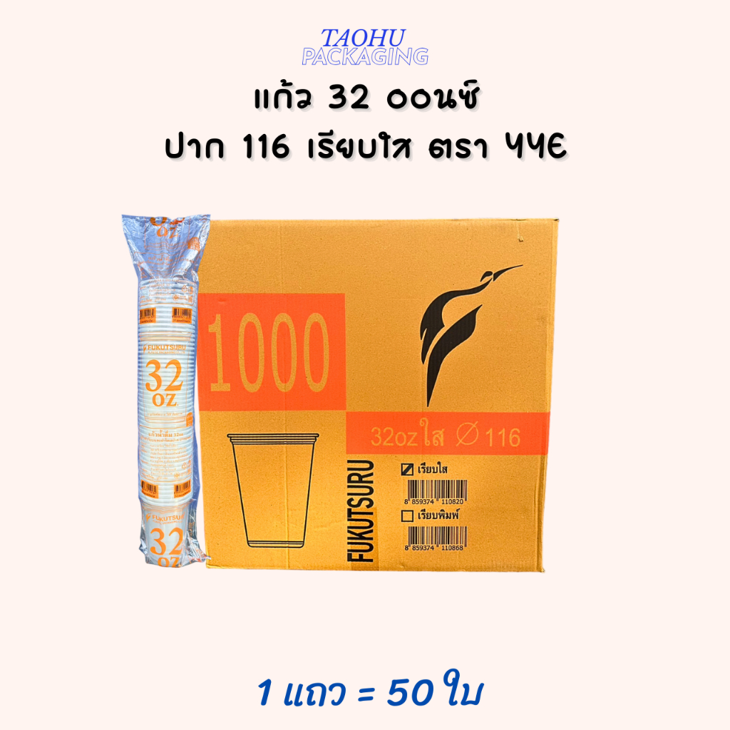 [ยกลัง 1,000 ใบ] แก้ว 32 ออนซ์ ปาก 116 เรียบใส YYE ## รบกวนลูกค้าสั่ง 1 ลัง ต่อ 1 ออเดอร์นะคะ ##